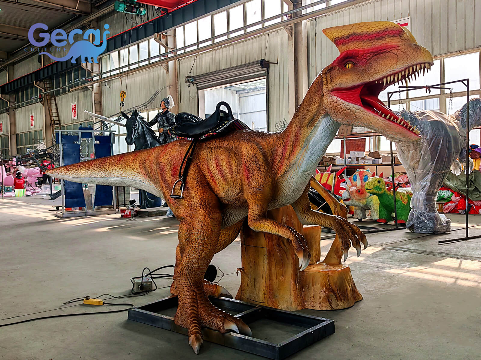 Customizable in size, color, and motion functions, this Dilophosaurus ride is a versatile and engaging addition to any park or themed attraction.