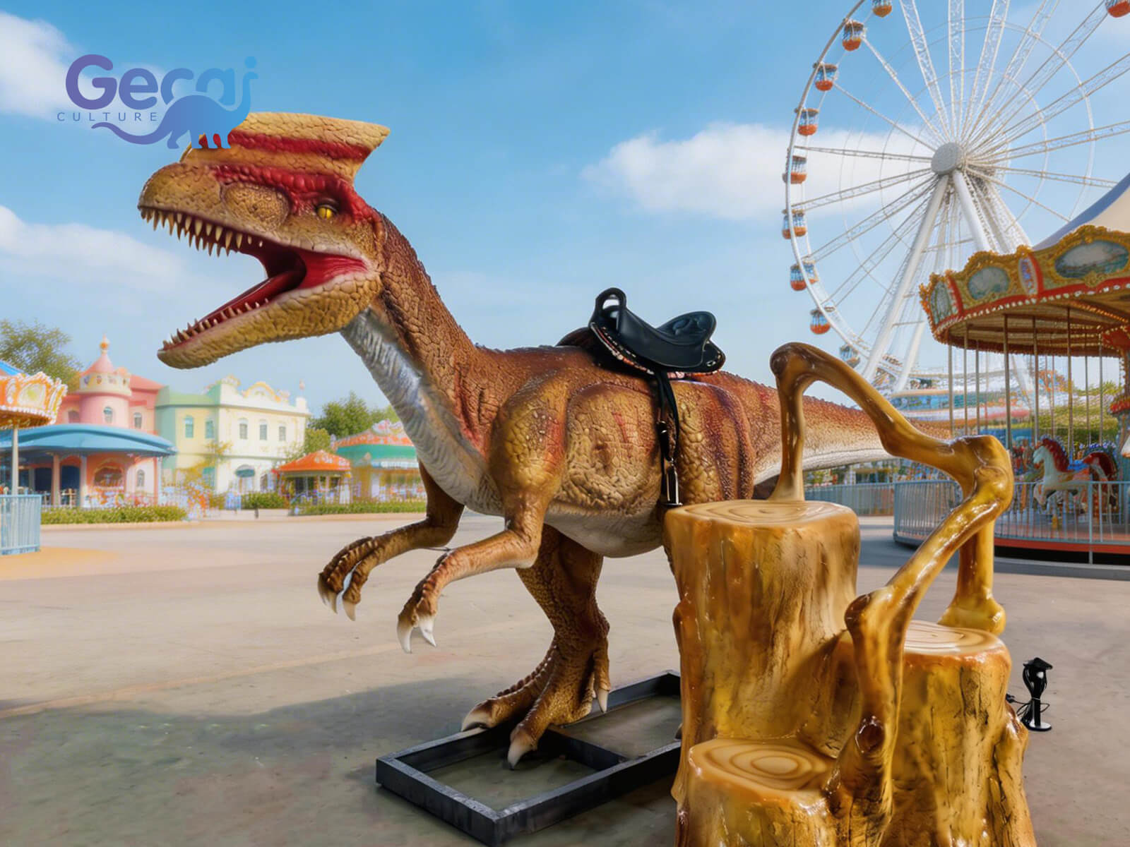 The Dilophosaurus Animatronic Dinosaur Ride is an exciting and interactive attraction designed for parks, family entertainment zones, and themed dinosaur areas. Featuring lifelike design, vibrant colors, and smooth animatronic movements, this ride allows children to experience the thrill of riding a prehistoric creature safely and enjoyably.
