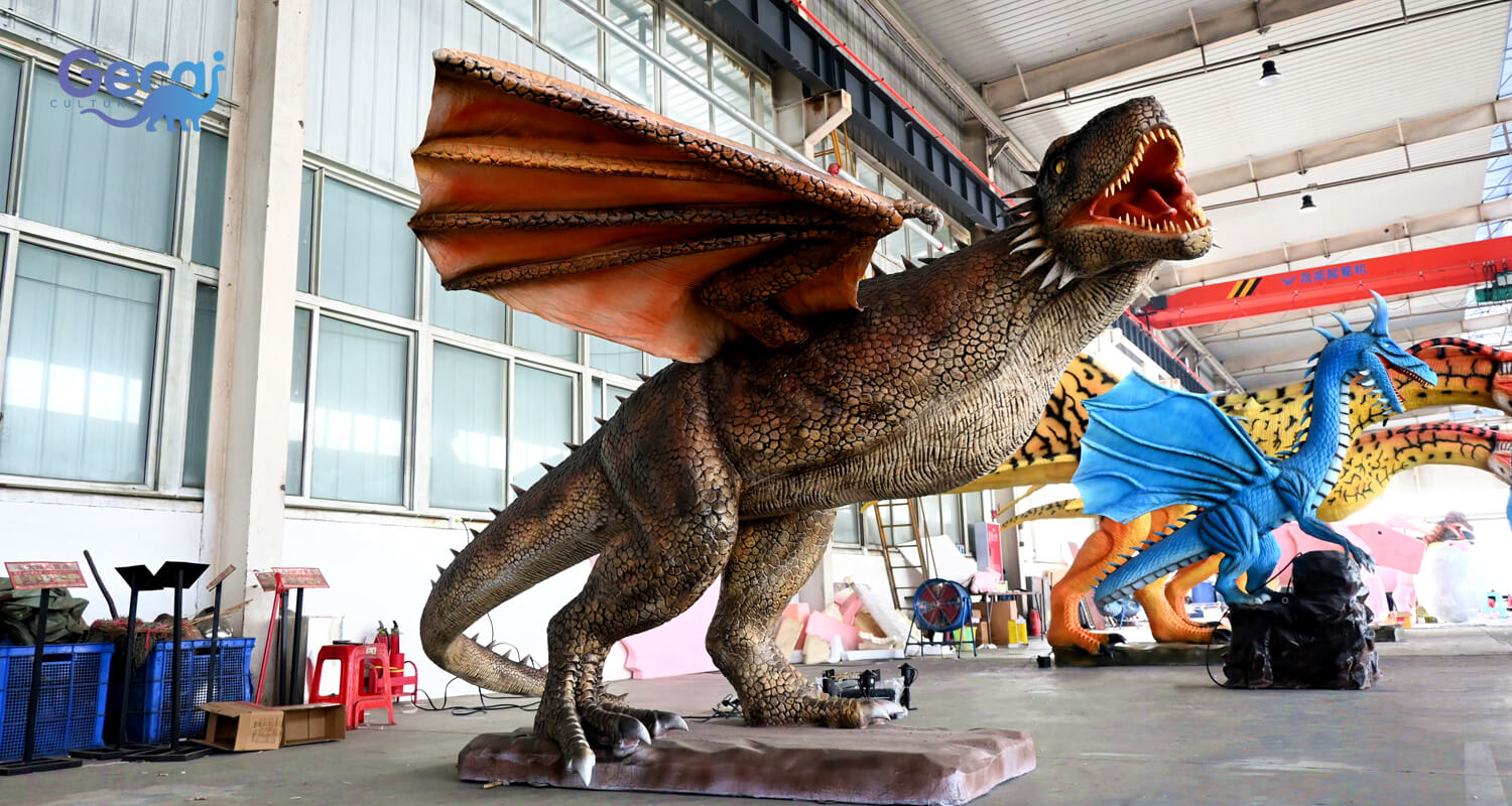 At Gecai Culture, we specialize in crafting animatronic dragons that merge engineering precision with artistic creativity. From small tabletop models perfect for indoor exhibits to towering beasts with wingspans stretching over 10 meters, each dragon is a unique collaboration between our designers and our clients. Our lifelike movements, detailed sculpting, and special effects turn ideas into reality—ensuring your dragon is more than just a model, but a living legend.