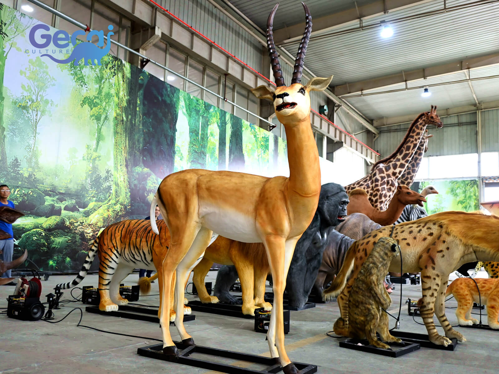 Custom sizes and species (like Impala, Gazelle, or Kudu) are available to match your exhibit theme. Whether as a standalone attraction or part of a larger animatronic animal display, this antelope statue brings nature closer to your audience.