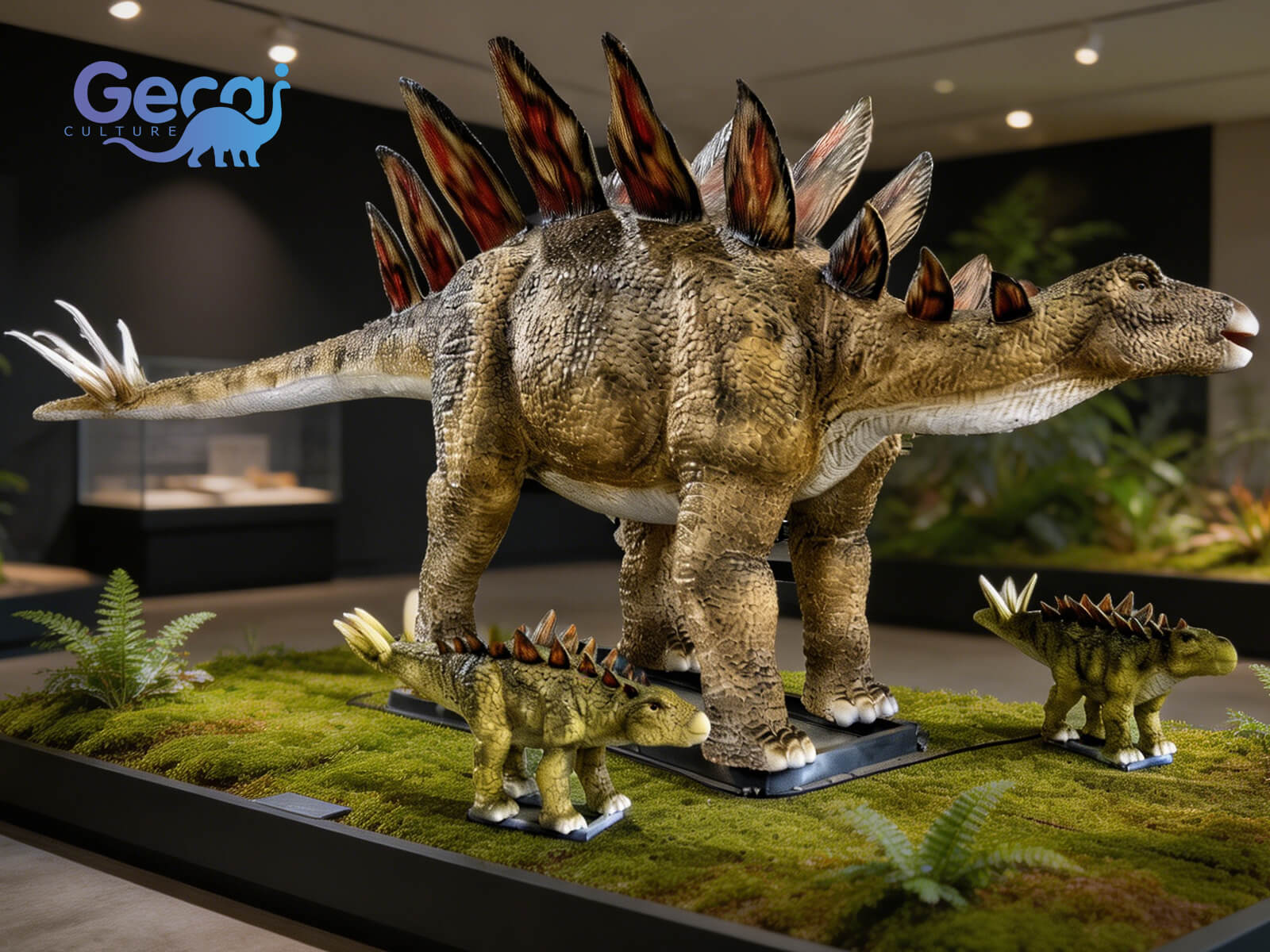 Customizable in size, color, layout, and movement functions, this animatronic Stegosaurus family set offers a versatile and captivating solution for both entertainment and educational projects.