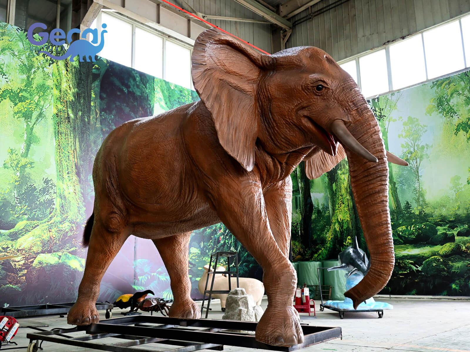 Discover the majesty of our Animatronic Elephant Statue, a masterpiece blending artistry with cutting-edge technology. Standing tall at [height], this lifelike creation captures the essence of the noble elephant, with meticulously crafted details from its tusks to its textured skin. Perfectly suited for museums, zoos, or distinguished private collections, our animatronic elephant moves with grace, its trunk lifting in a lifelike manner, captivating all who behold it. Available in customizable sizes and finishes to suit your space, this statue promises to awe and inspire.