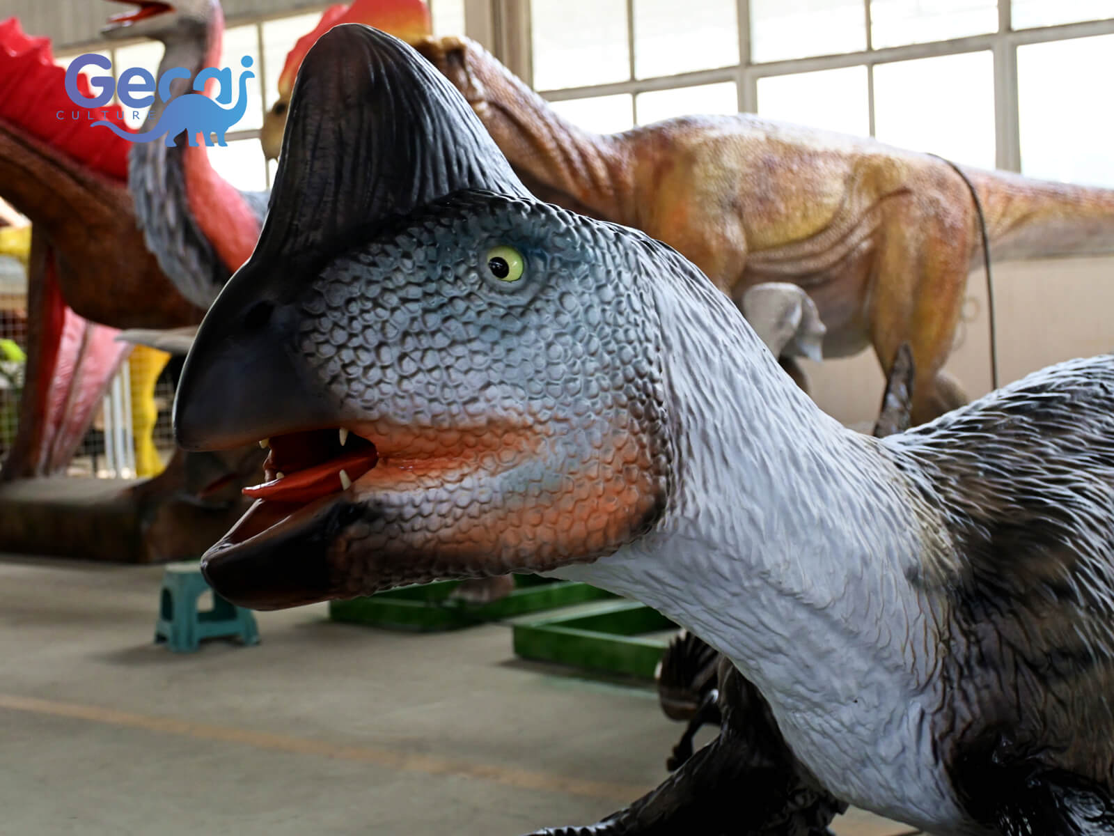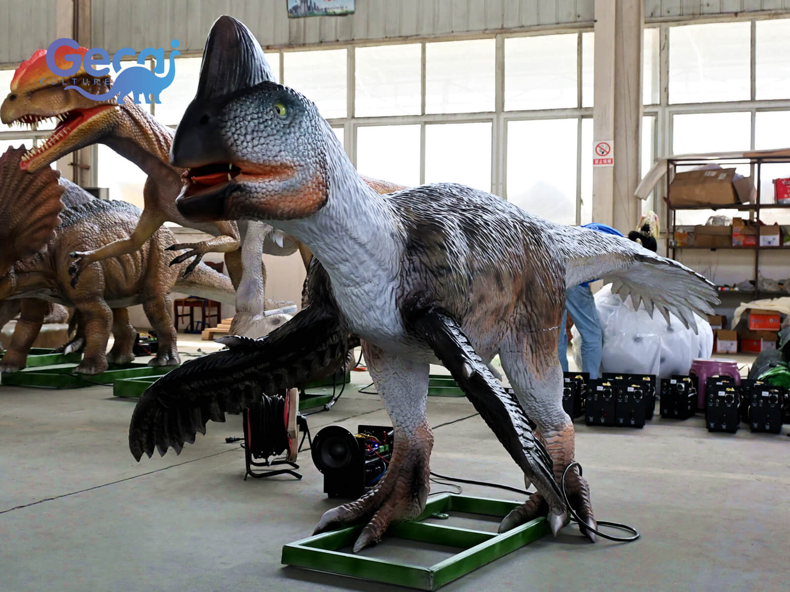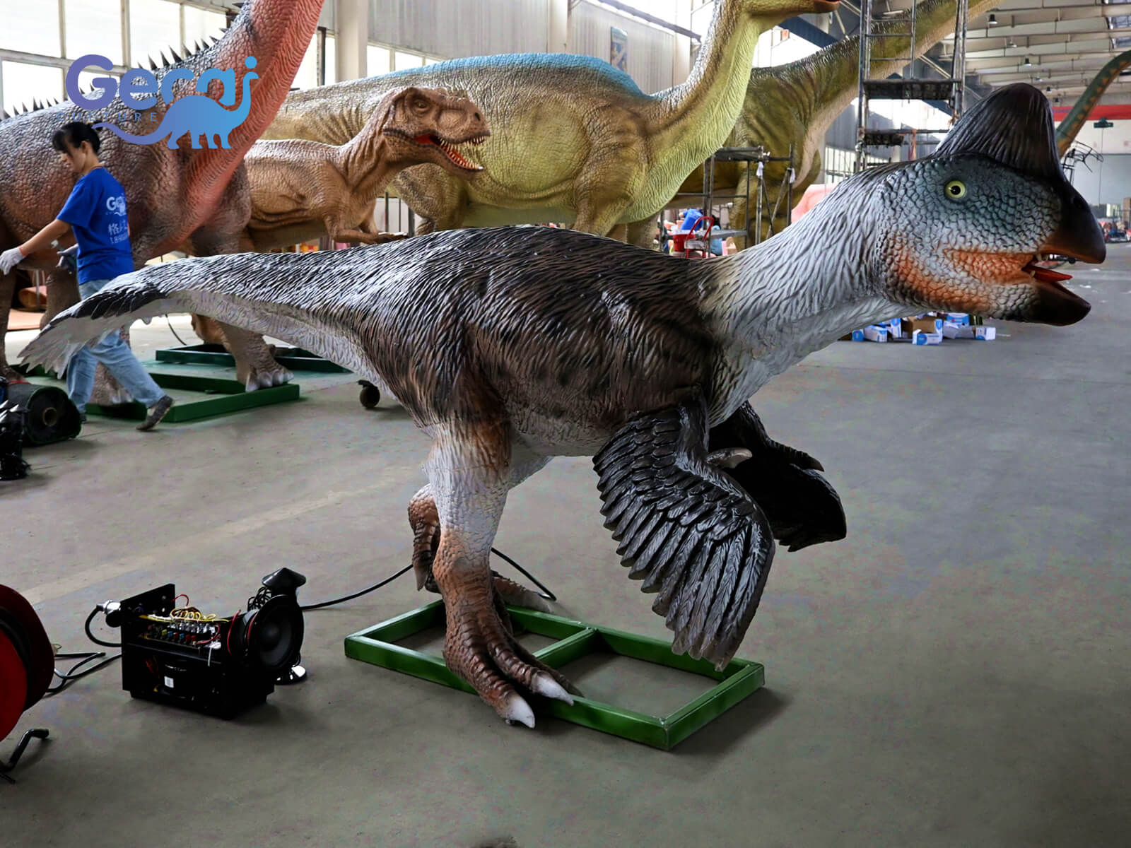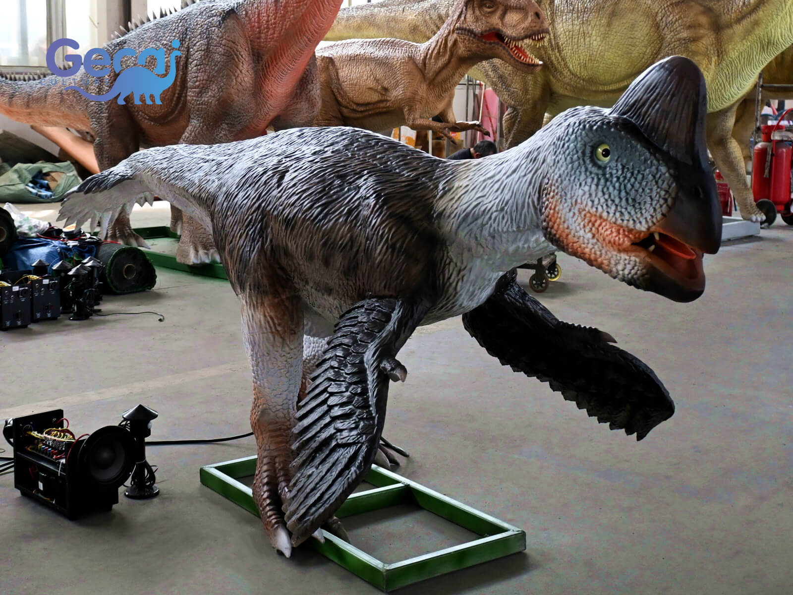Introduce a fascinating glimpse of prehistoric life with the Animatronic Feathered Oviraptor, a captivating addition to any dinosaur-themed park or exhibit. Known for its bird-like features and beaked snout, this model is beautifully detailed with realistic feathers, expressive eyes, and vivid color patterns that reflect the latest paleontological interpretations.