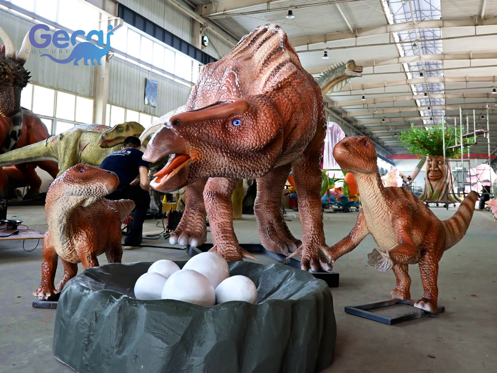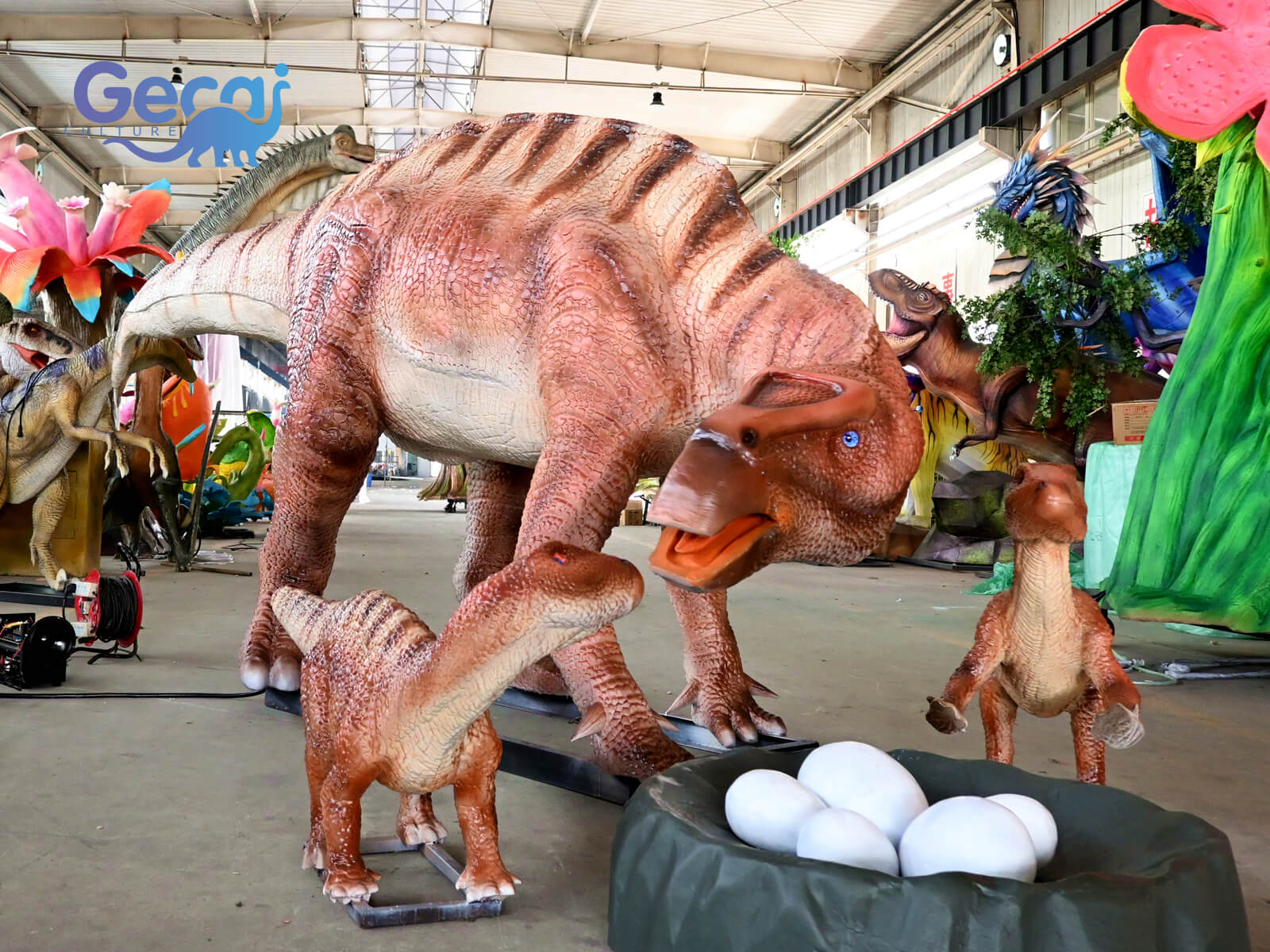 Bring prehistoric life to your attraction with the Lifelike Animatronic Hadrosaurus Family Set. This charming group features an adult Hadrosaurus and its young, posed in a natural, interactive scene that highlights gentle herd behavior and nurturing instincts.