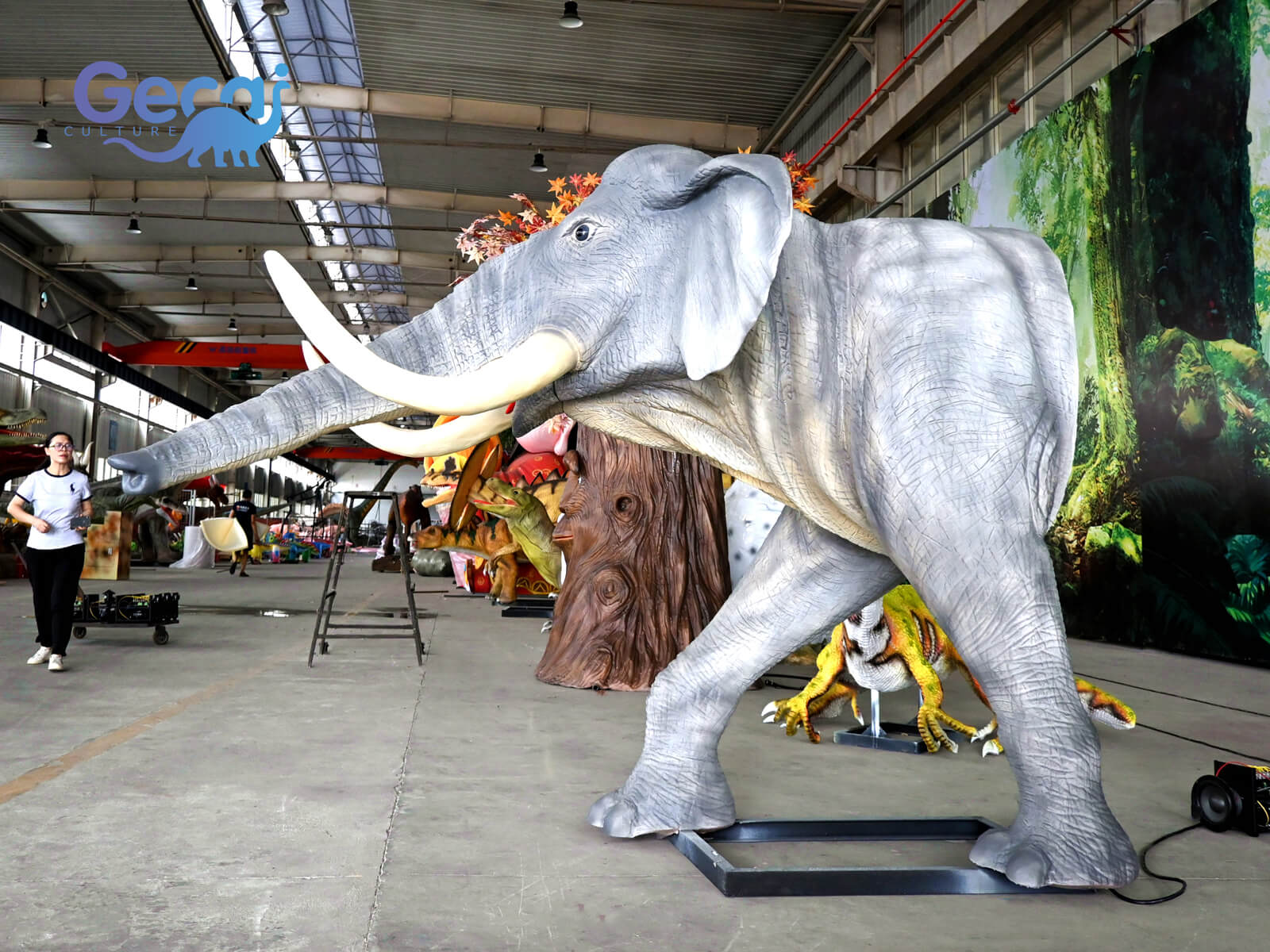 The animatronic movements include gentle trunk swaying, ear flapping, head turns, and natural elephant sounds—creating a captivating and immersive effect for visitors. Its lifelike presence makes it perfect for zoos, safari-themed parks, museums, or indoor attractions.