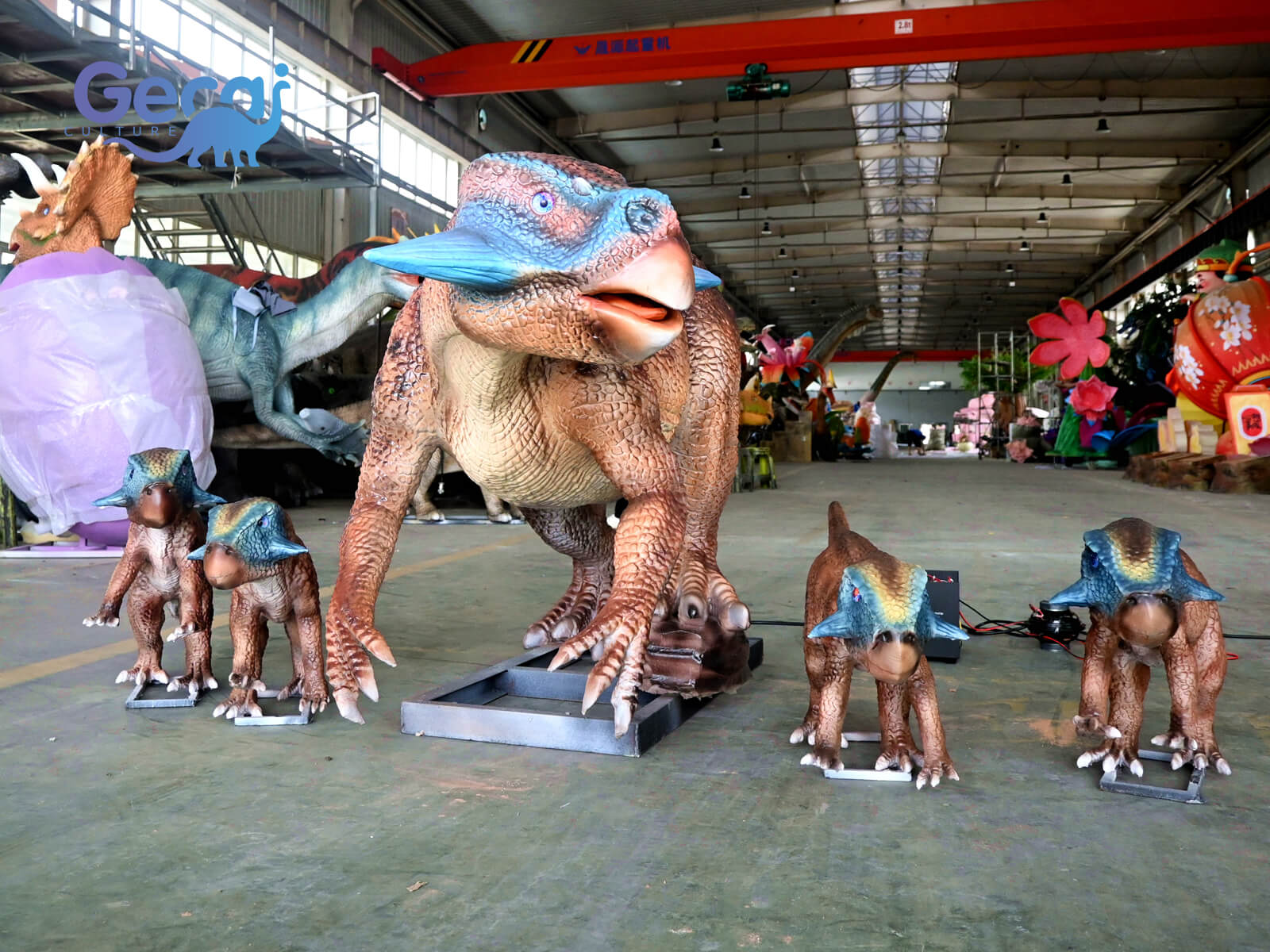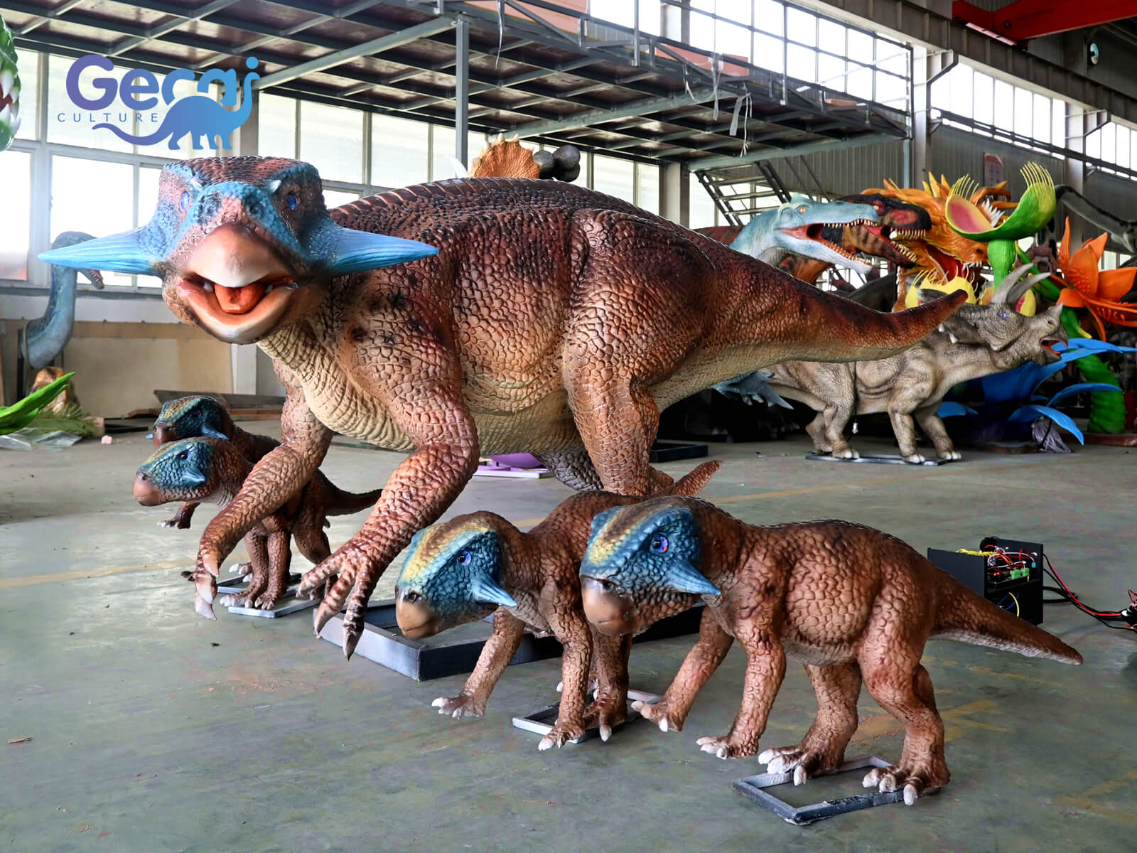 Bring prehistoric charm to your exhibit with the Lifelike Animatronic Psittacosaurus Family Set. This delightful group features adult and juvenile models posed in natural, interactive stances—perfect for telling the story of dinosaur parenting and social behavior.