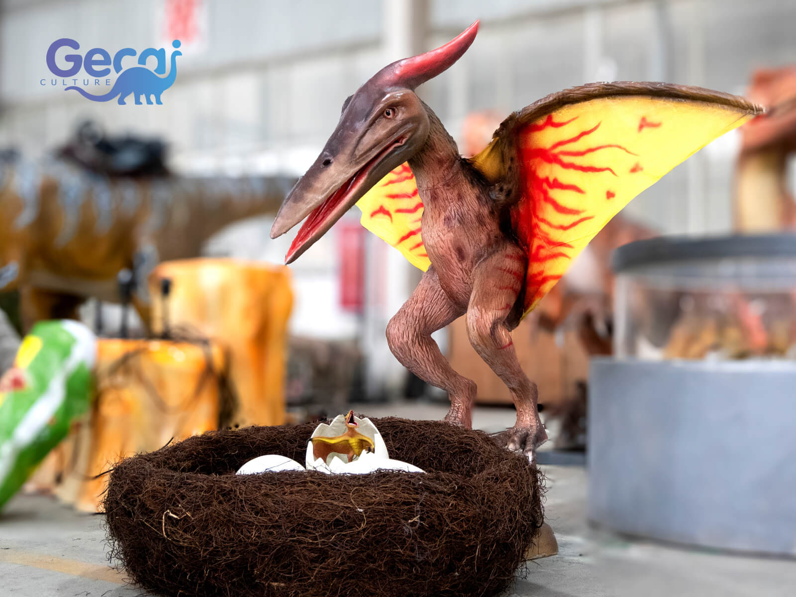 Ideal for dinosaur parks, educational exhibits, and immersive themed environments, it can be showcased as a standalone attraction or integrated into a larger prehistoric ecosystem display. The combination of adult pterosaur presence and carefully crafted egg nest enhances storytelling, sparks curiosity, and creates engaging photo opportunities for visitors of all ages.