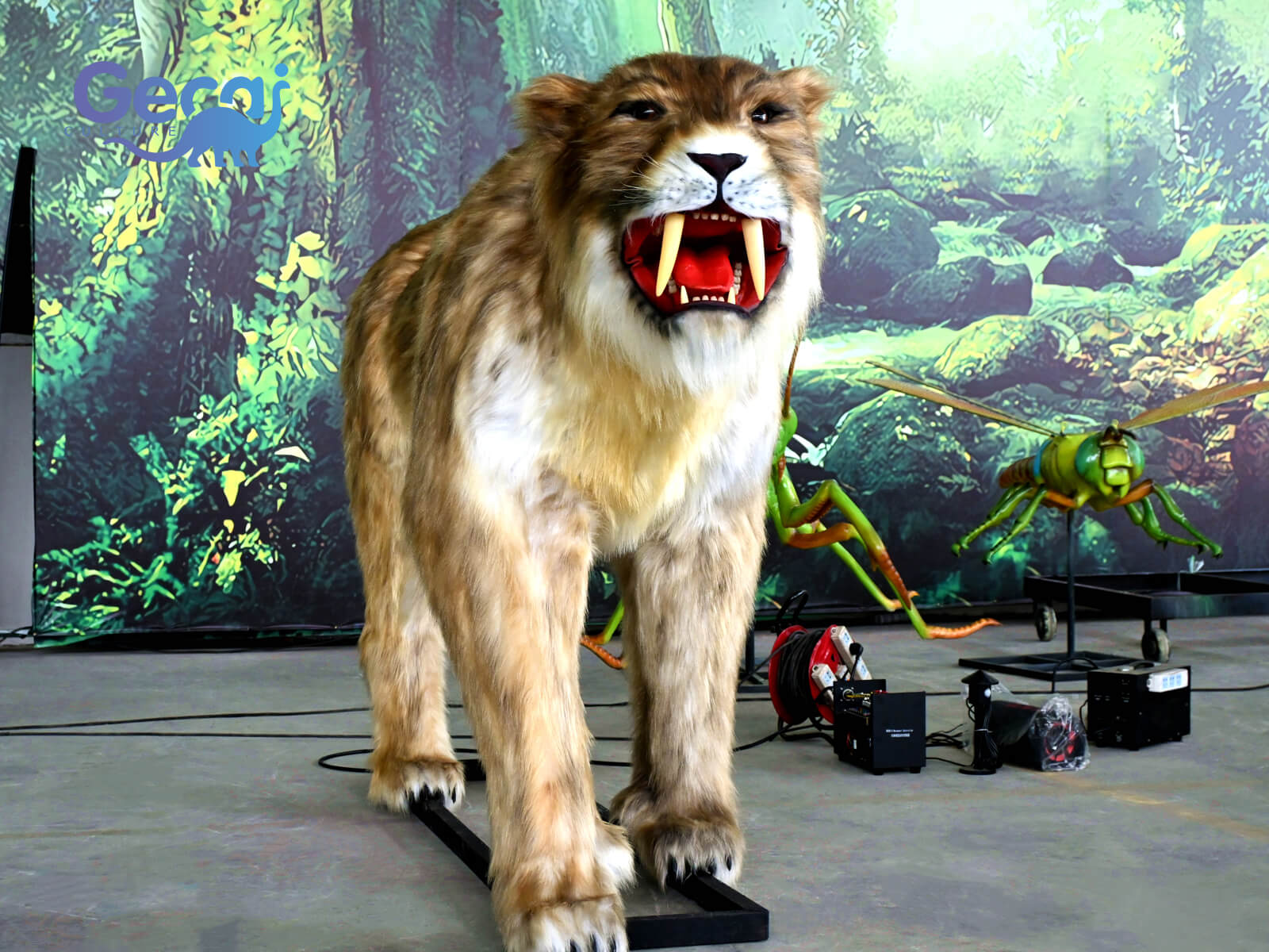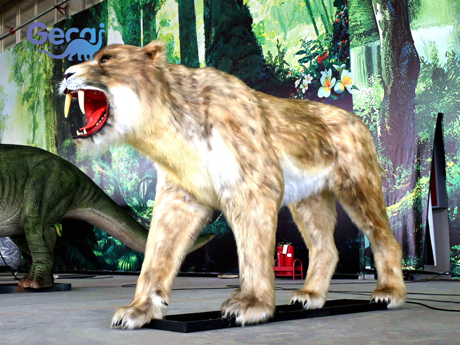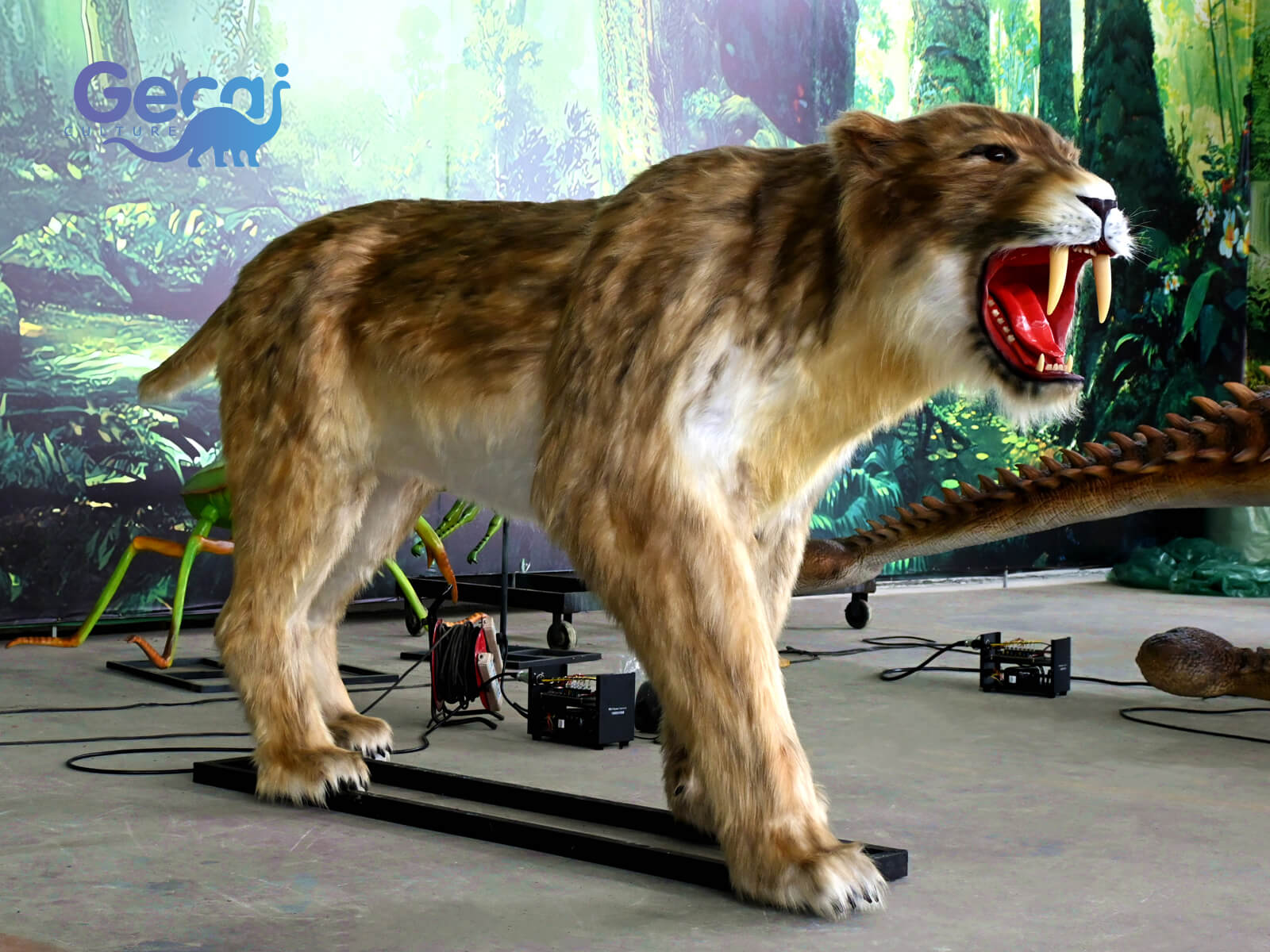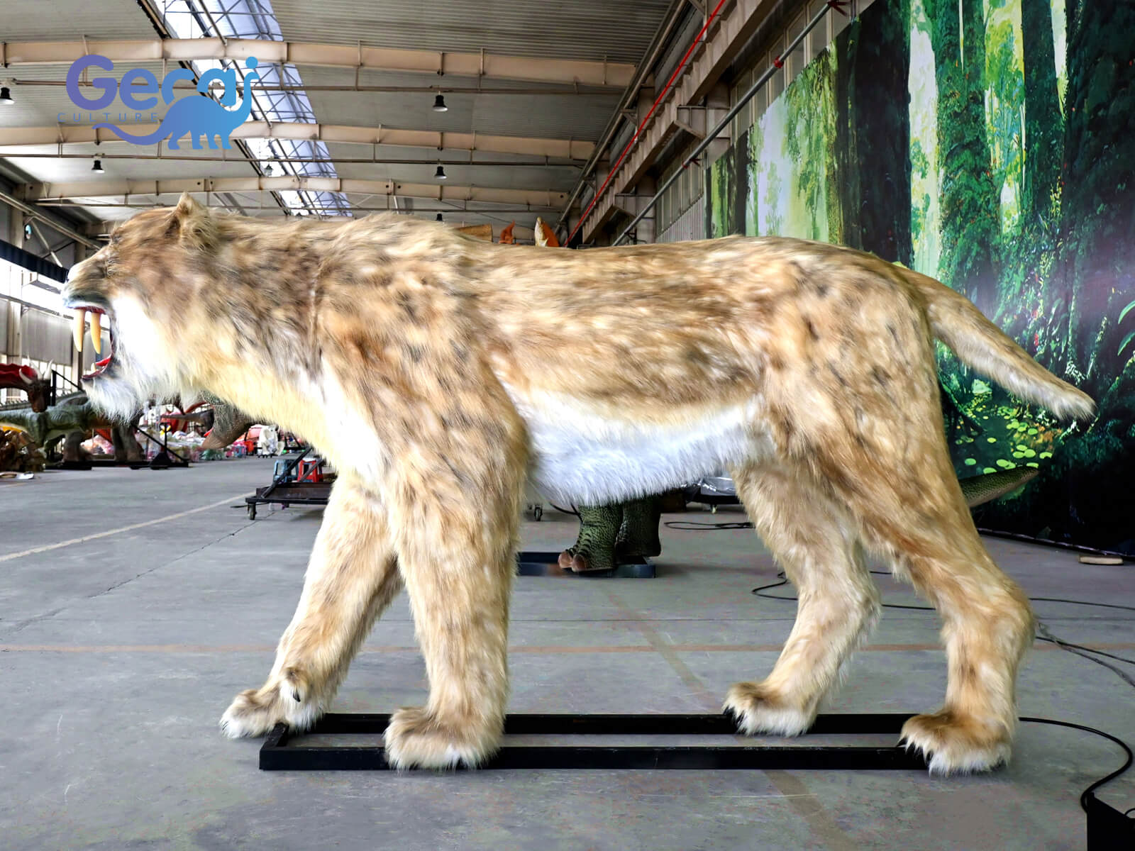 Behold the Animatronic Saber-toothed Tiger Statue, a marvel of prehistoric engineering and artistry. Crafted with meticulous detail, this lifelike replica captures the fierce essence of the ancient predator, complete with realistic fur textures and menacingly sharp teeth.