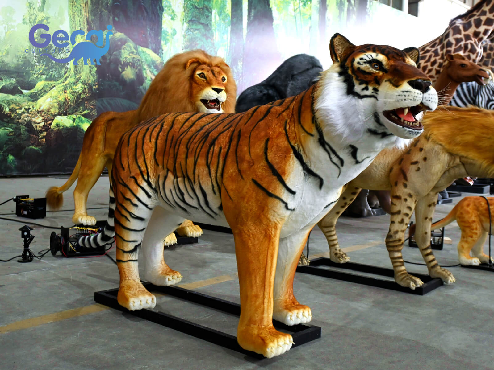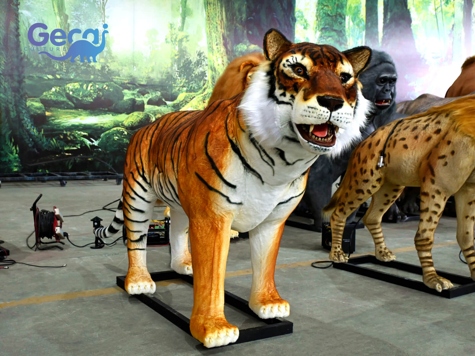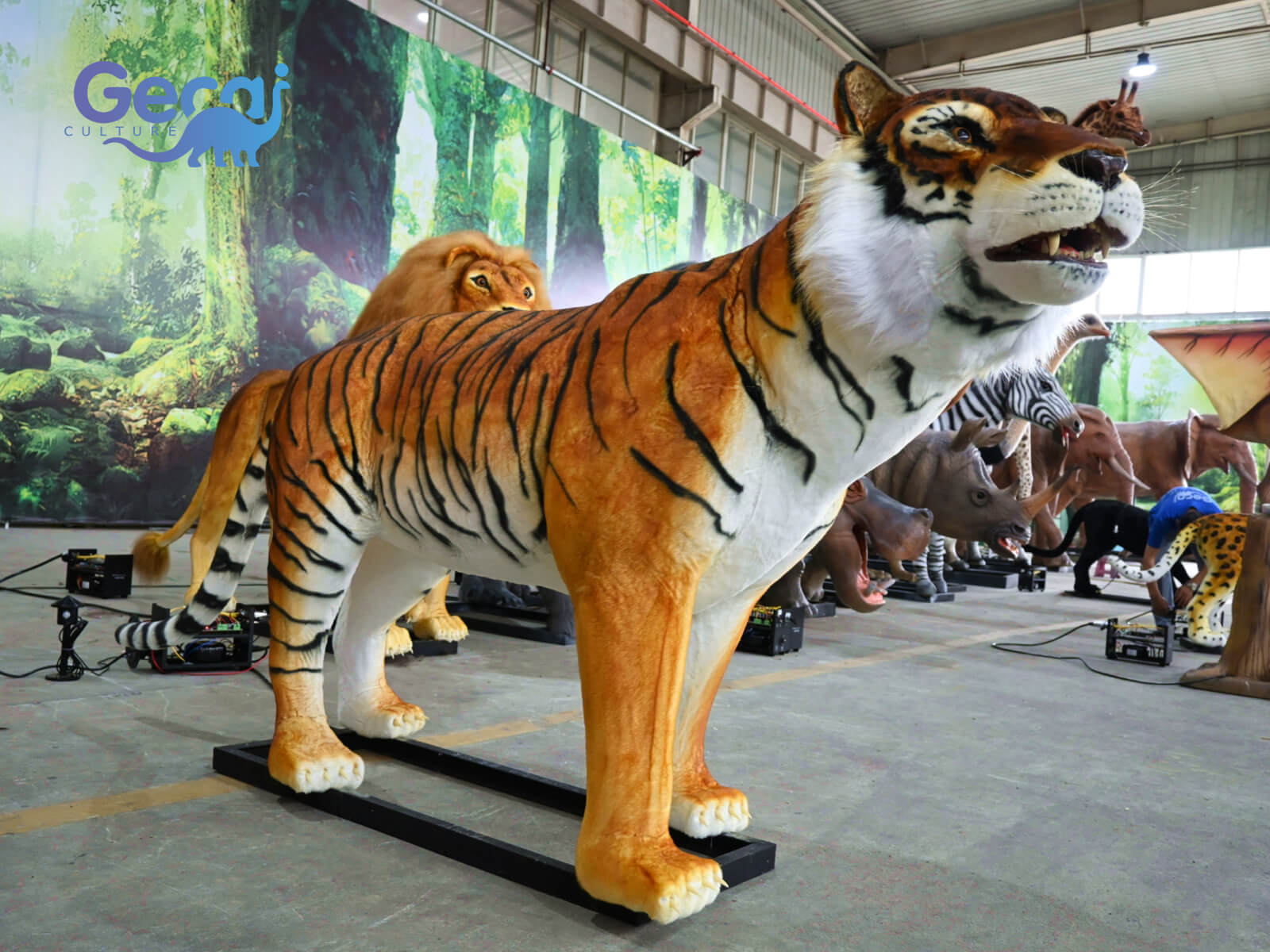 Our Zoo Animatronic Tiger Animal Statue is a lifelike and captivating addition to any wildlife exhibit or educational setting. Crafted with meticulous attention to detail, this animatronic statue replicates the majestic presence of a real tiger, complete with realistic movements such as head turning, mouth opening, and tail swishing.