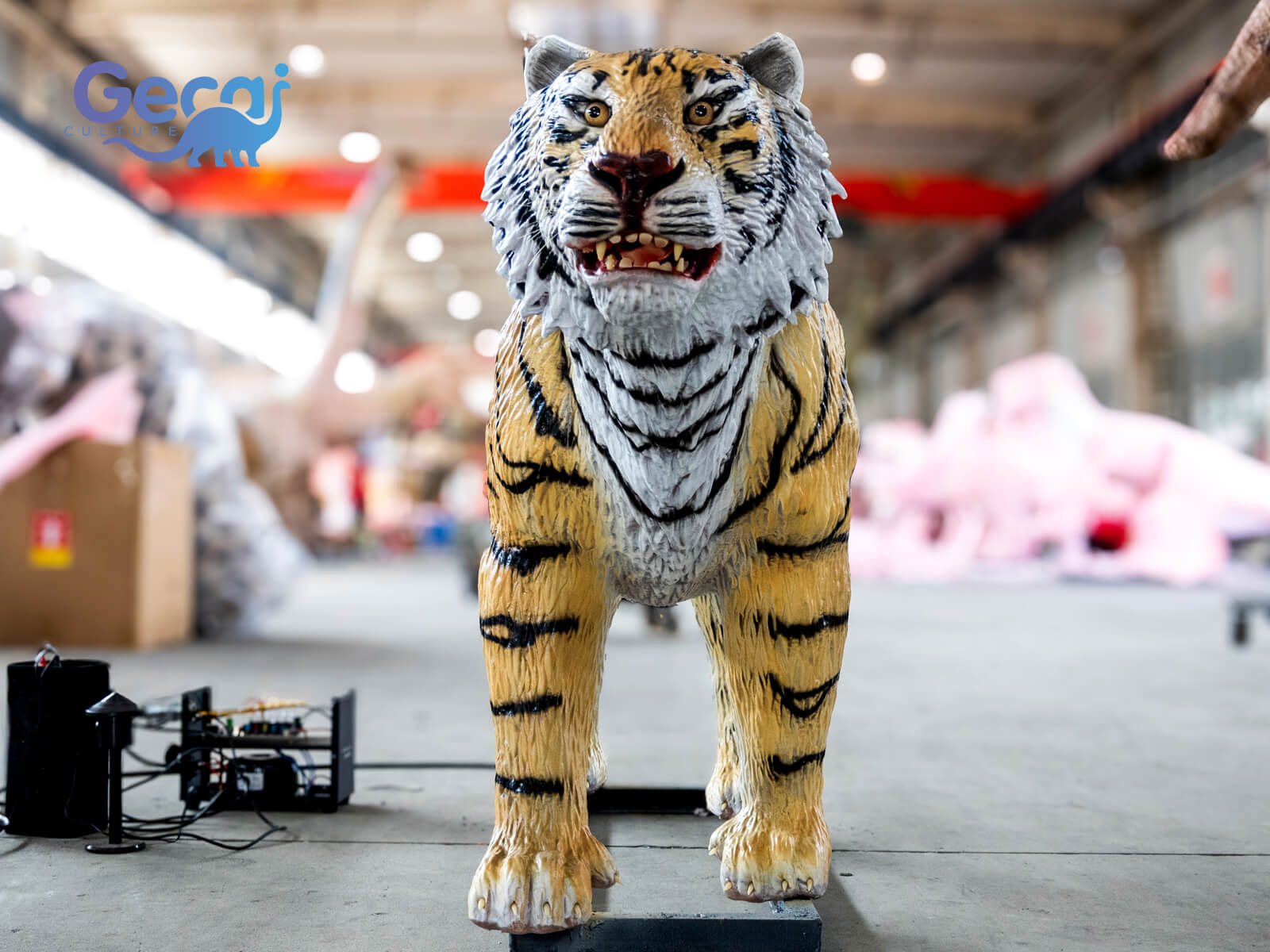 Customizable in size, posture, color variation, and movement functions, this animatronic tiger offers a versatile and visually impactful solution for zoo and wildlife-themed attractions.