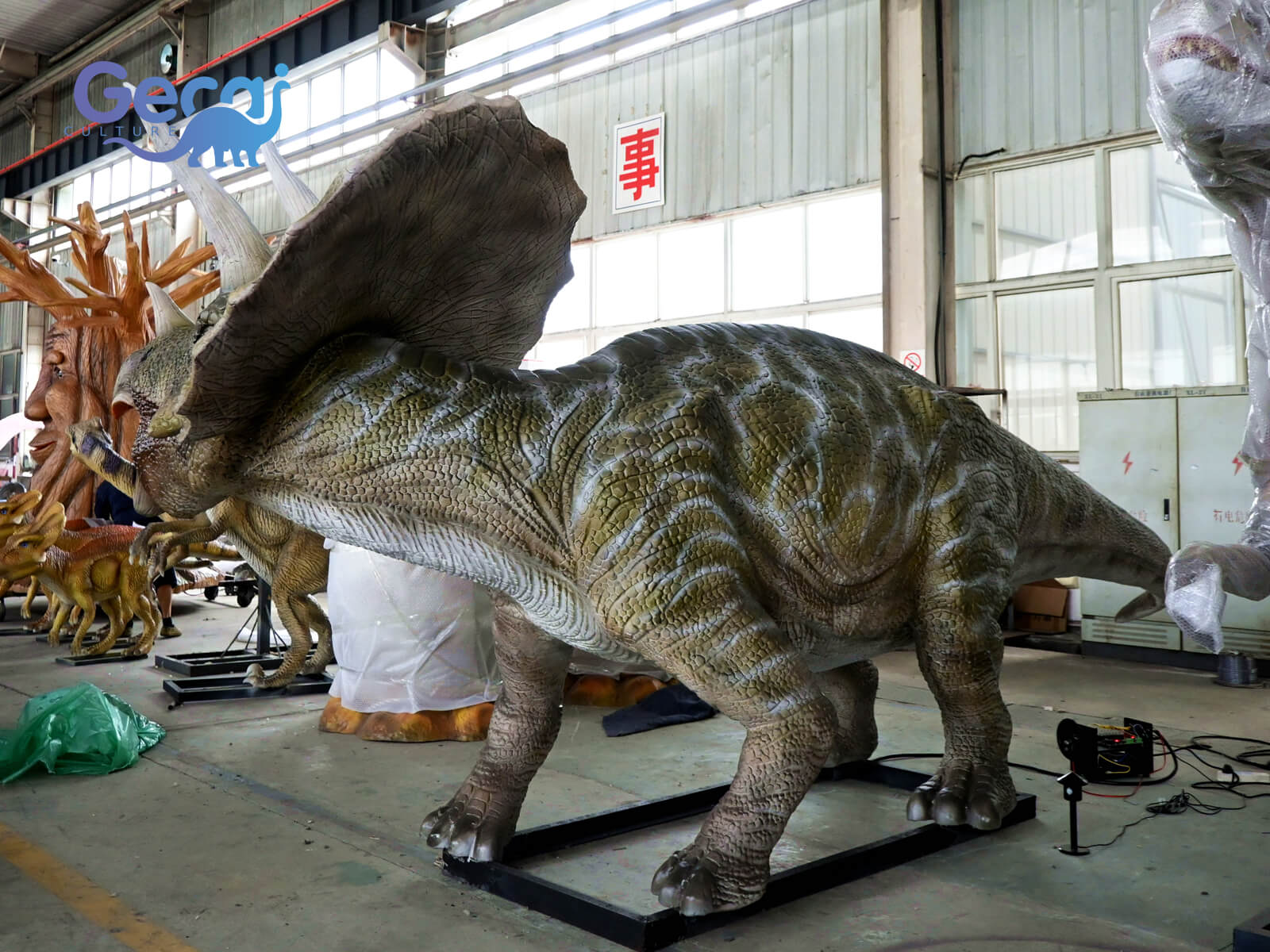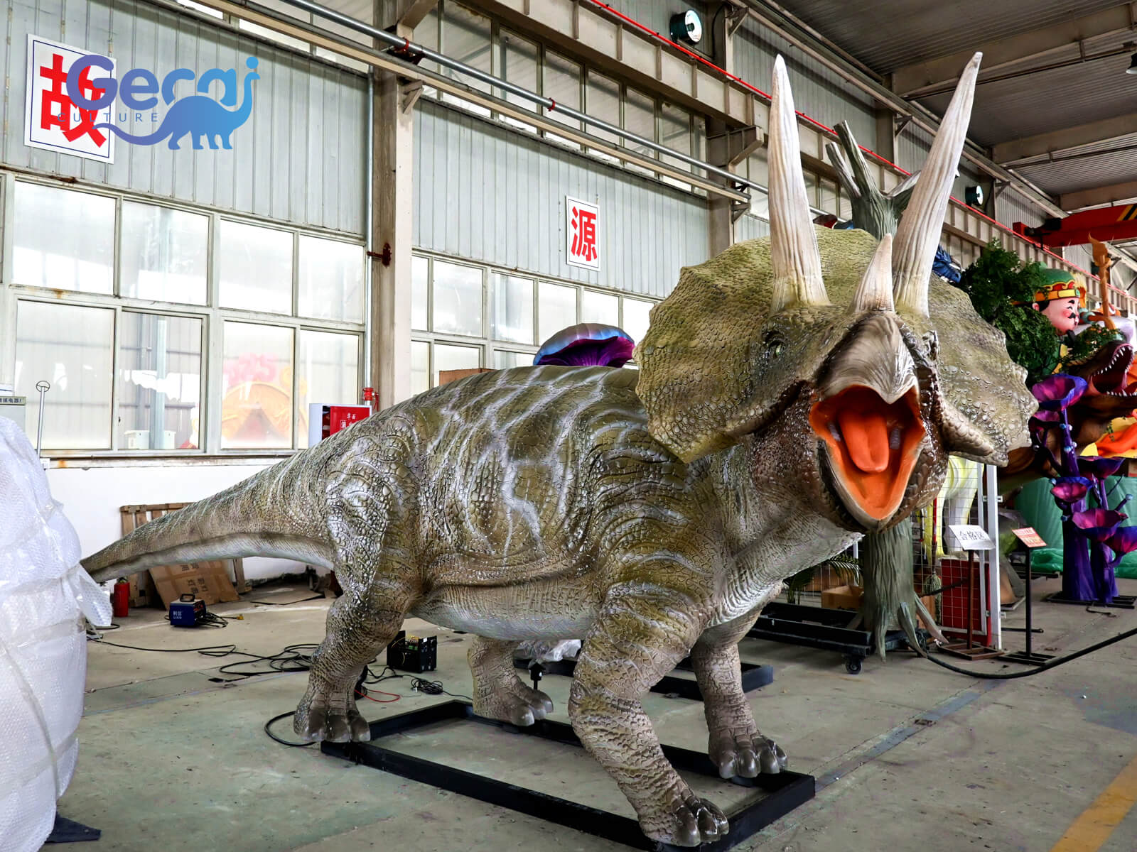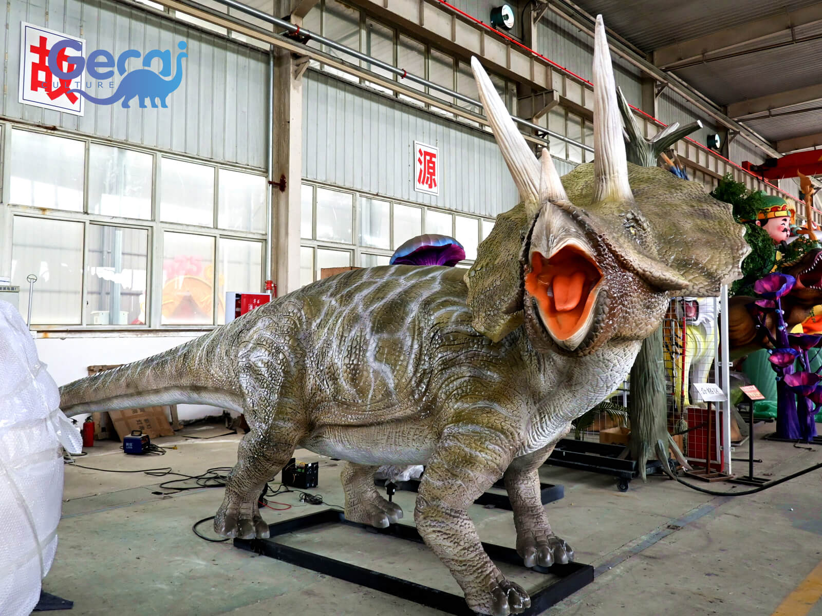 The Dinosaur Park Animatronic Triceratops Statue is a lifelike and dynamic recreation of the iconic three-horned dinosaur. Designed with meticulous detail, this animatronic statue features realistic movements and sounds, bringing the prehistoric creature to life.