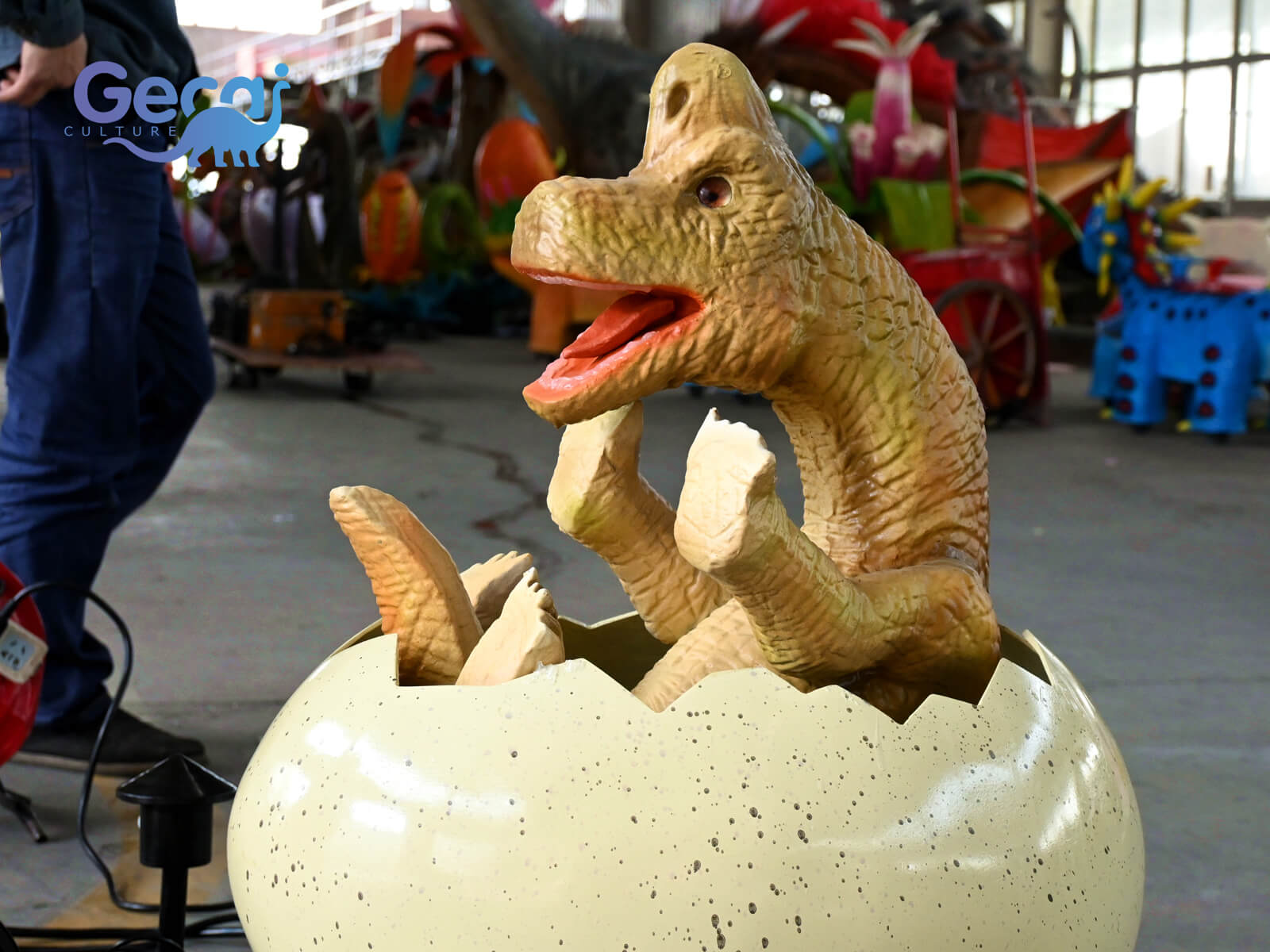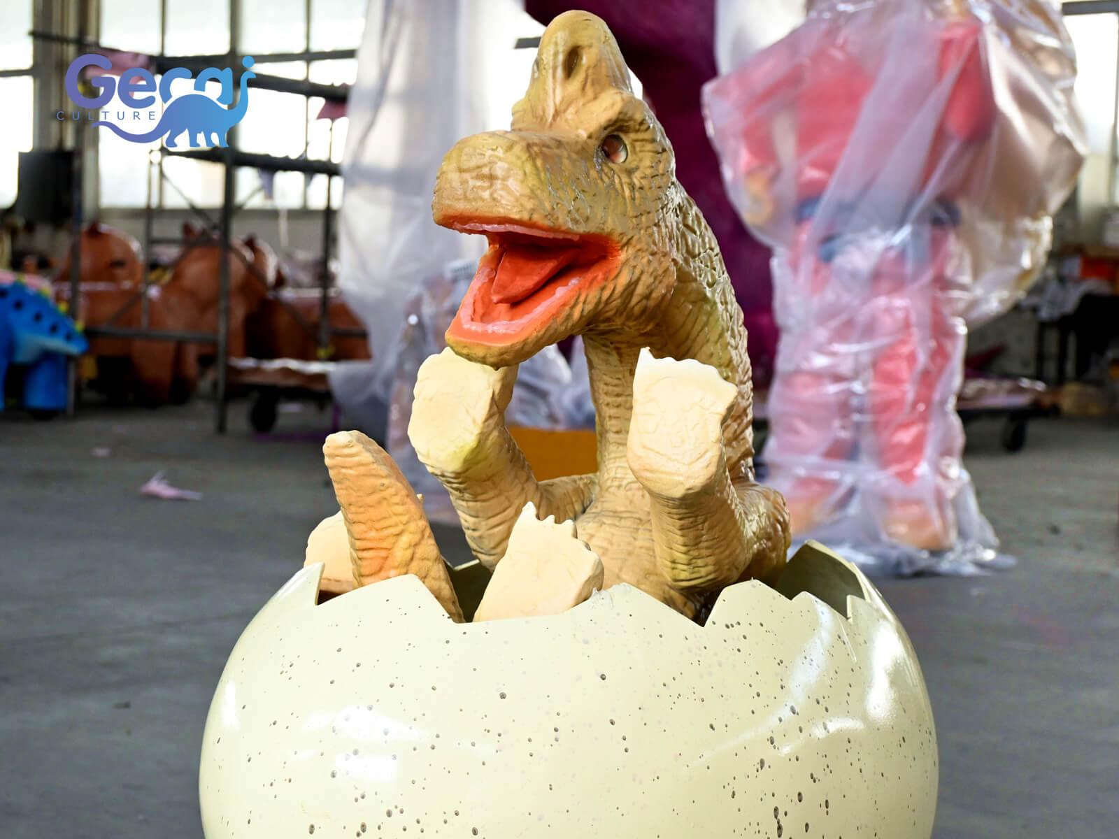 Introduce pure prehistoric cuteness with the Baby Animatronic Brachiosaurus in Eggshell—an enchanting addition to dinosaur exhibits, parks, and children's attractions. This adorable baby dino is shown hatching from a cracked eggshell, complete with gentle movements that bring it to life, such as blinking eyes, tiny head tilts, and soft dinosaur sounds.