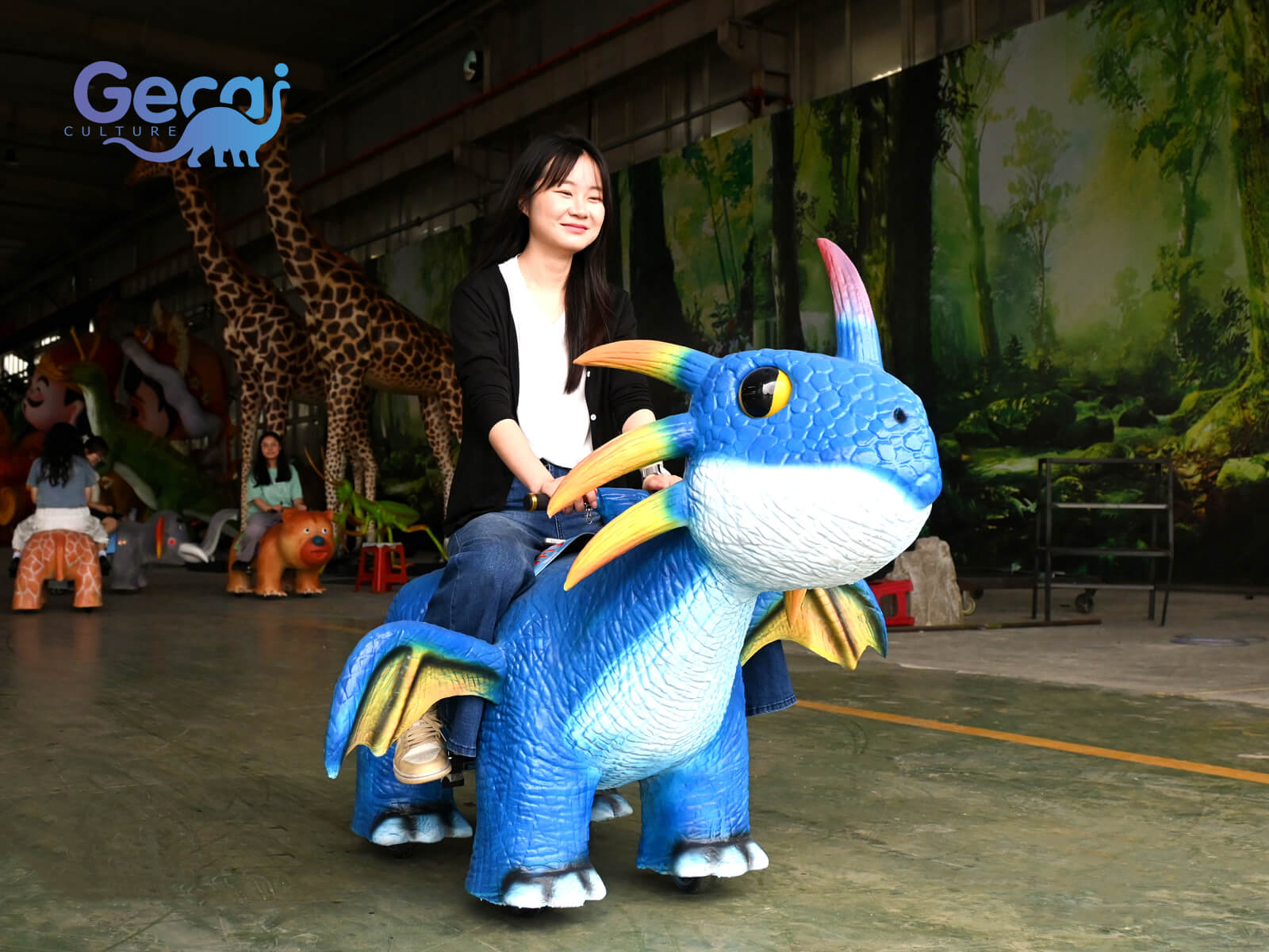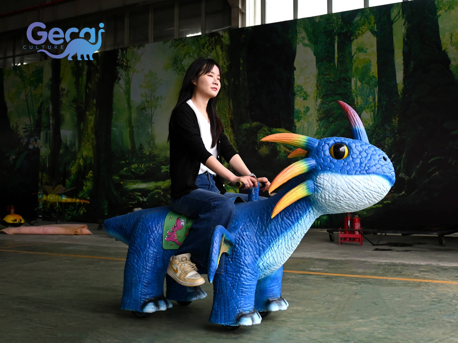 Dinosaur Scooter and Dinosaur Ride: Combining fun and mobility, they are designed in the shape of dinosaurs, providing a unique and enjoyable ride for kids and adults alike. They are ideal for theme parks, festivals, and parties.