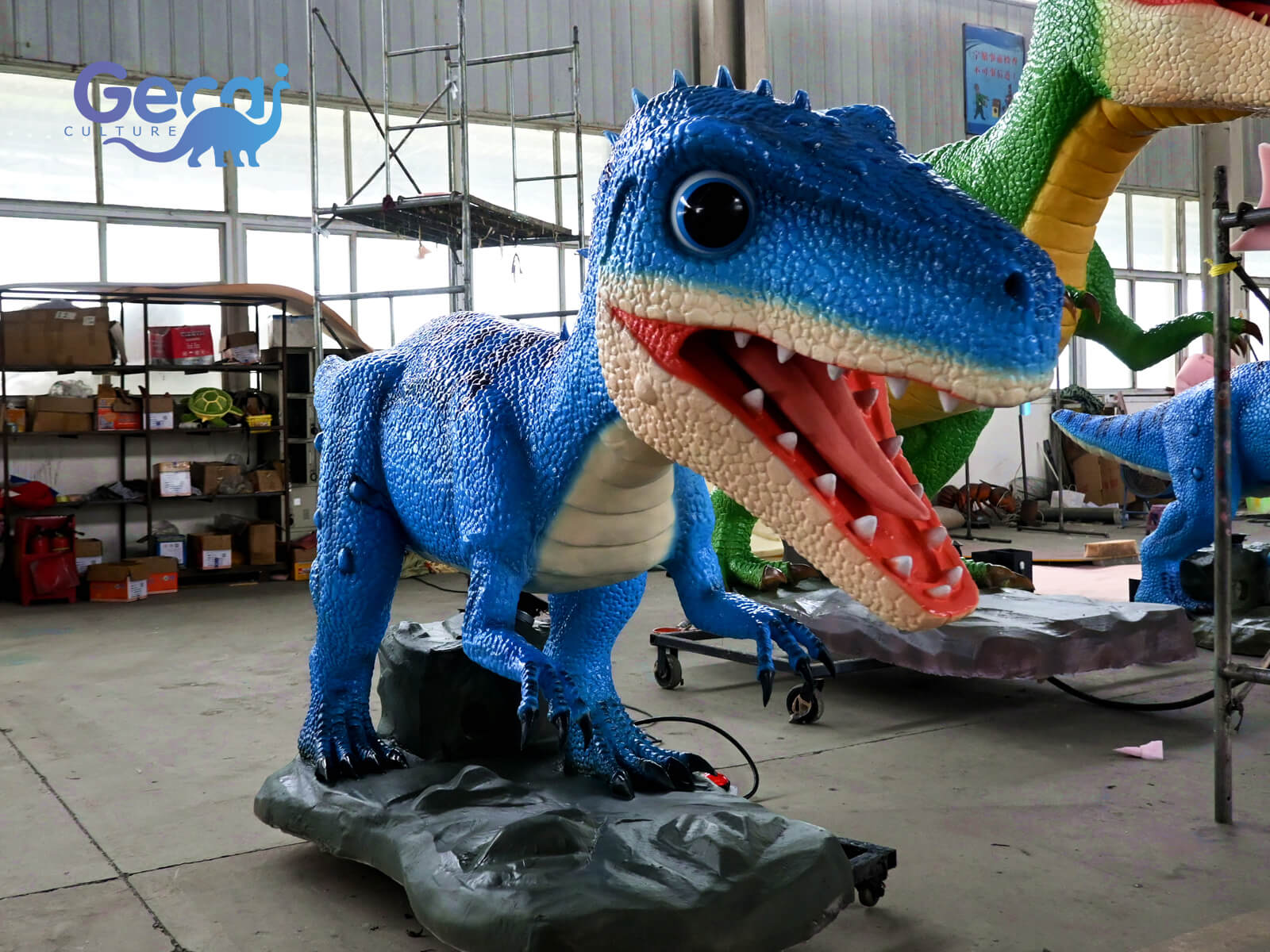 It comes to life with gentle head bobs, blinking eyes, mouth movements, and cheerful sound effects that add personality and fun. Perfect for dinosaur-themed parks, children's zones, or interactive exhibitions, this model blends animation with a cartoon-style design for maximum appeal.