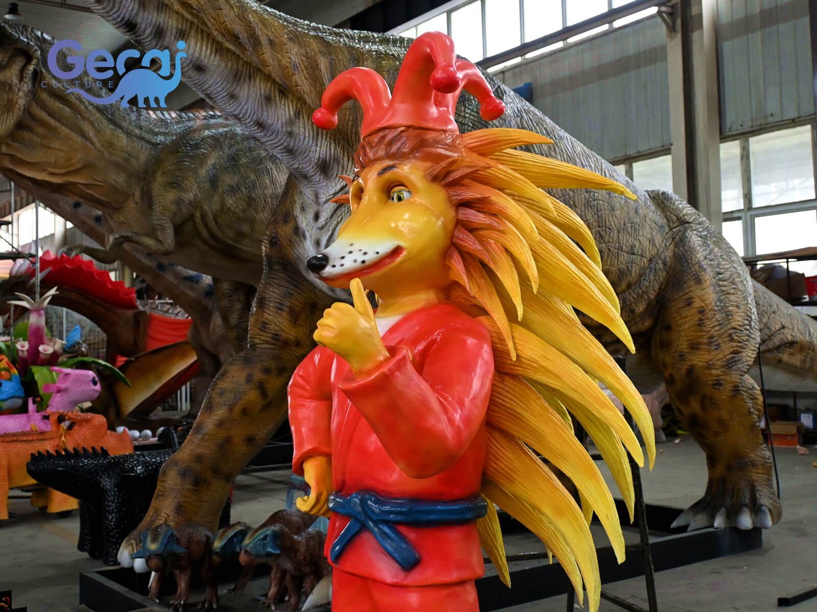 Equipped with interactive motions like head nodding, eye blinking, and playful gestures, it creates an engaging experience for visitors of all ages. Ideal for theme parks, exhibitions, and promotional events, each statue is crafted from durable, weather-resistant materials to ensure lasting appeal.