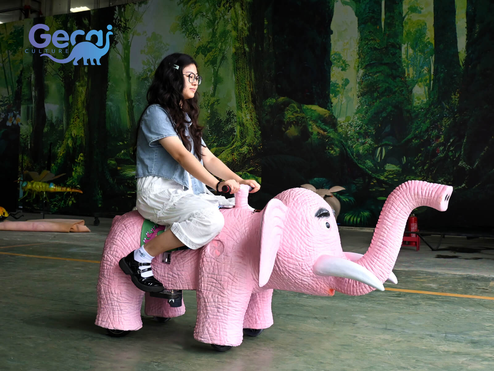 Brighten up your attraction with the Pink Cartoon Elephant Scooter for Kids, a delightful ride-on vehicle that combines whimsical design with smooth, child-friendly functionality. Shaped like an adorable pink elephant with big ears, cheerful eyes, and a gentle smile, this scooter is sure to become a favorite among young visitors.