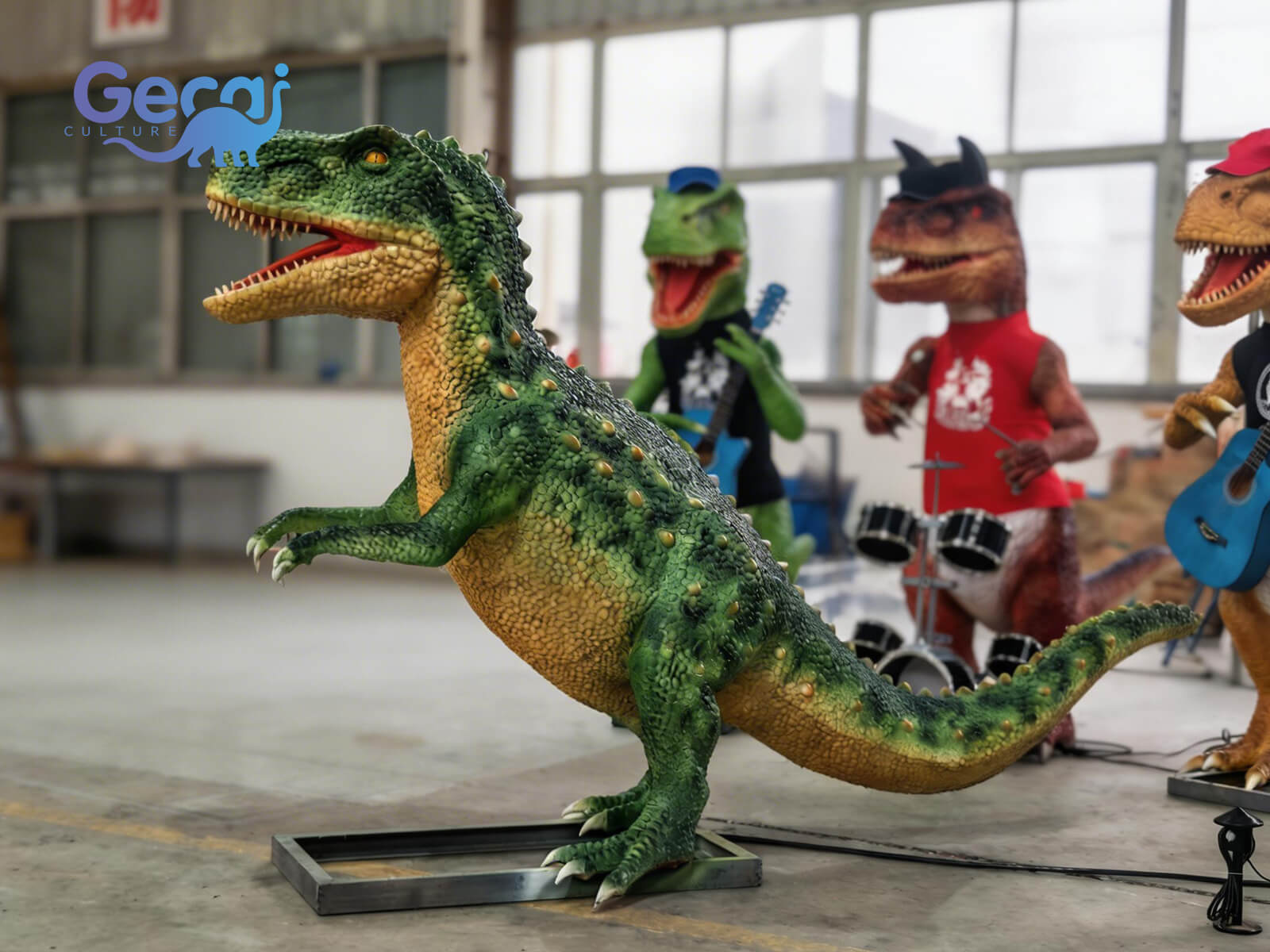 The Cartoon Green Animatronic Dinosaur is a lively and friendly display designed especially for playgrounds, children's parks, and family entertainment areas. Featuring bright green tones, a cute cartoon design, rounded shapes, and smooth animatronic movements, this model brings playful prehistoric charm to any space.