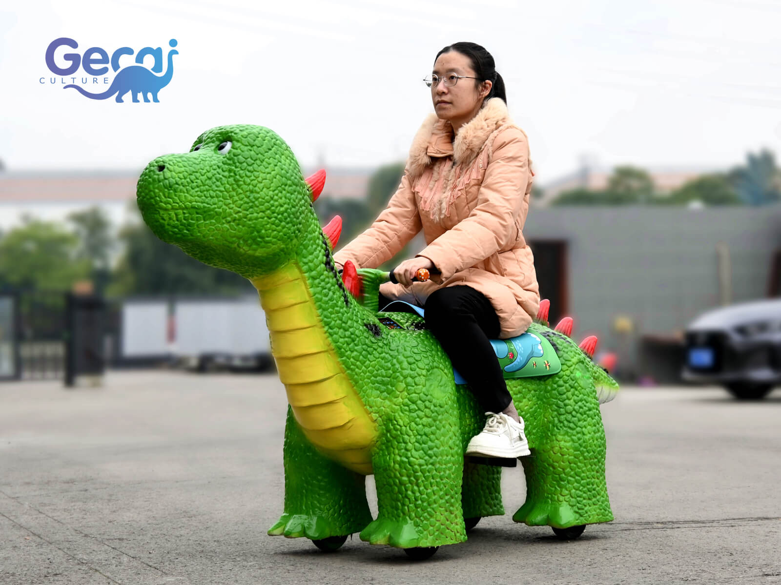Dinosaur Scooter and Dinosaur Ride: Combining fun and mobility, they are designed in the shape of dinosaurs, providing a unique and enjoyable ride for kids and adults alike. They are ideal for theme parks, festivals, and parties.