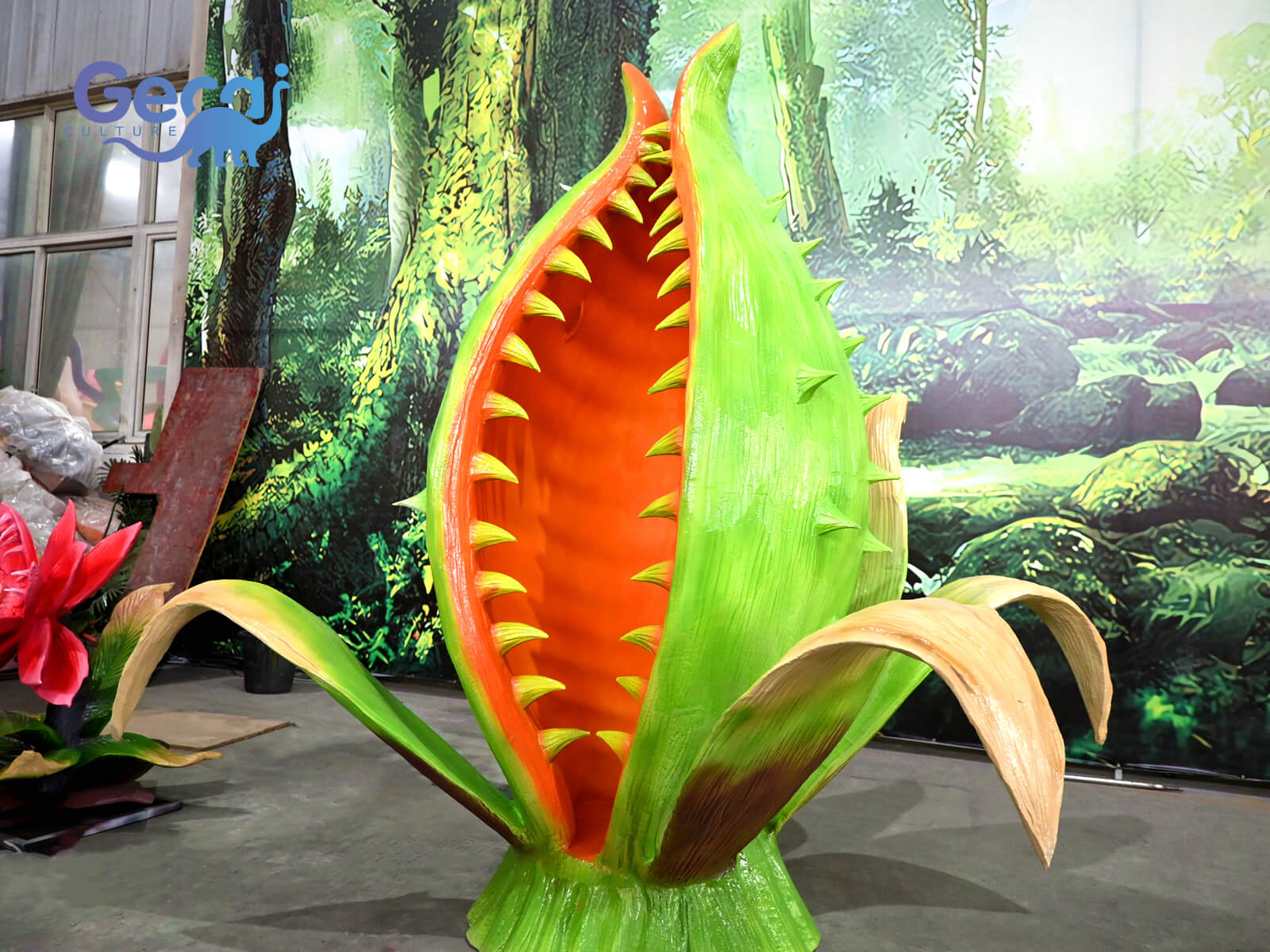 Whether used as a standalone centerpiece or part of a larger decorative setup, this giant Venus flytrap statue provides an eye-catching focal point that enhances any environment and offers visitors an unforgettable visual experience.