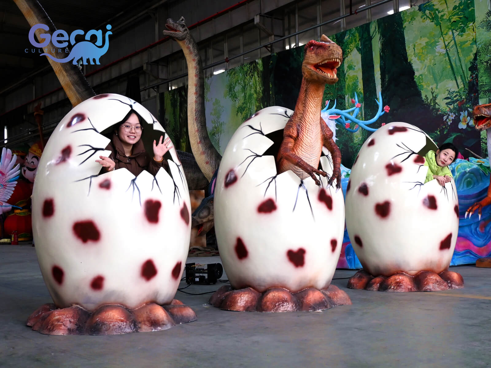 Perfect for photo zones, family attractions, and dinosaur-themed events, the eggs can be arranged as a small cluster or integrated into a larger dinosaur scene. Their interactive design enhances visitor participation, increases dwell time, and creates fun, shareable photo opportunities for guests of all ages.