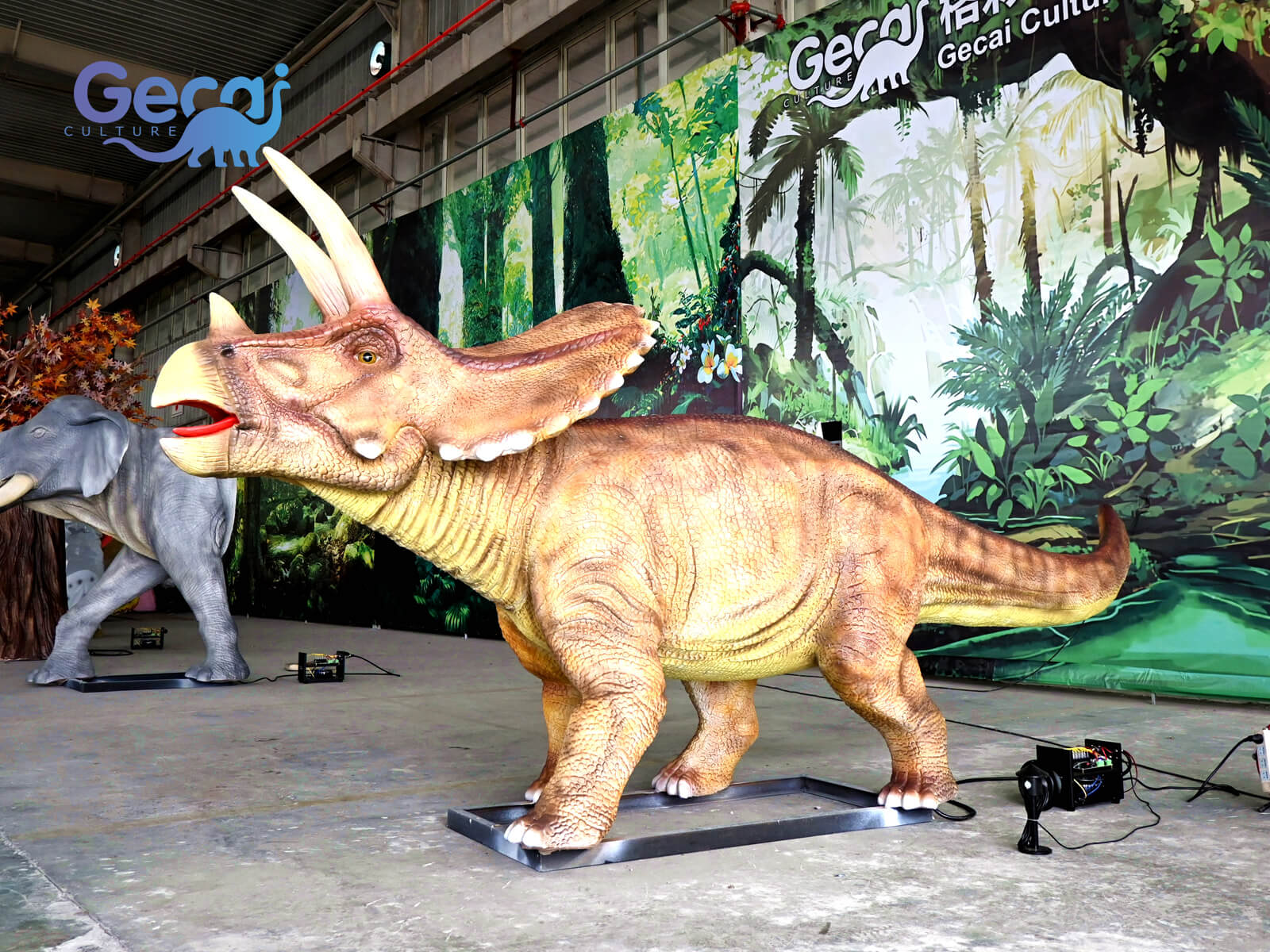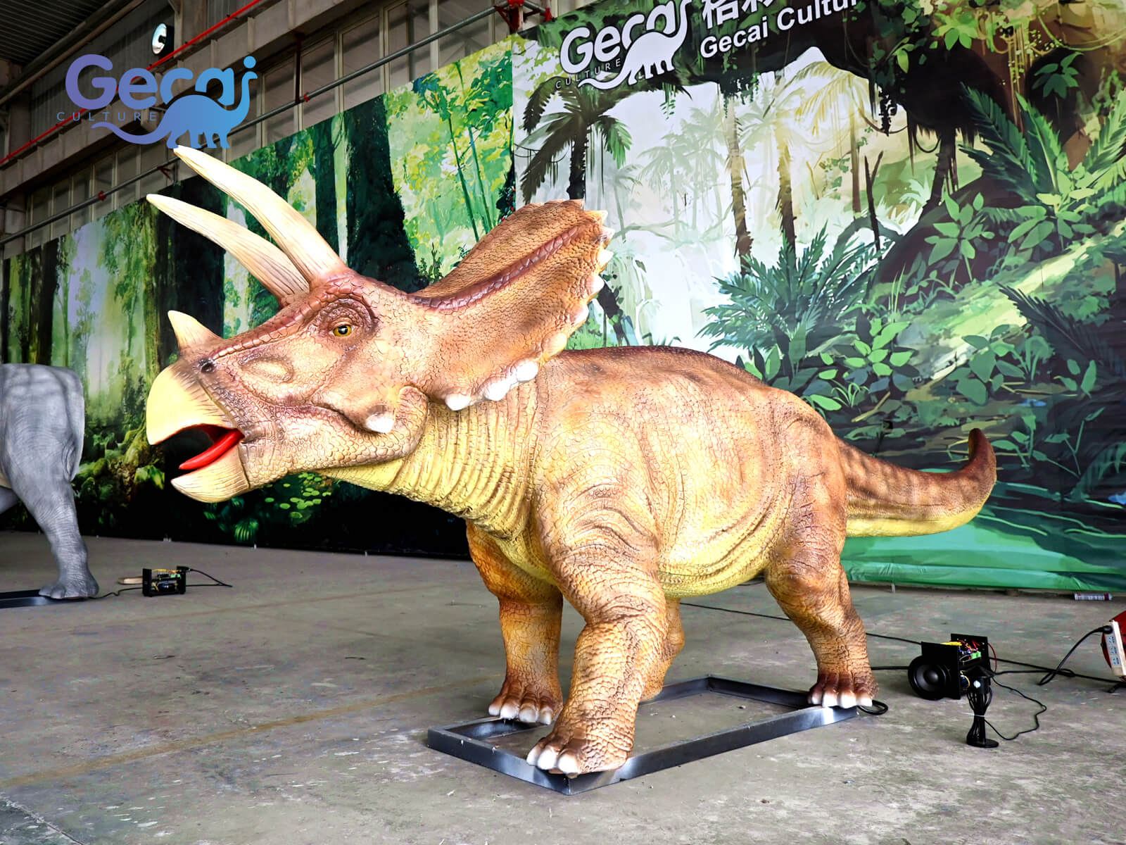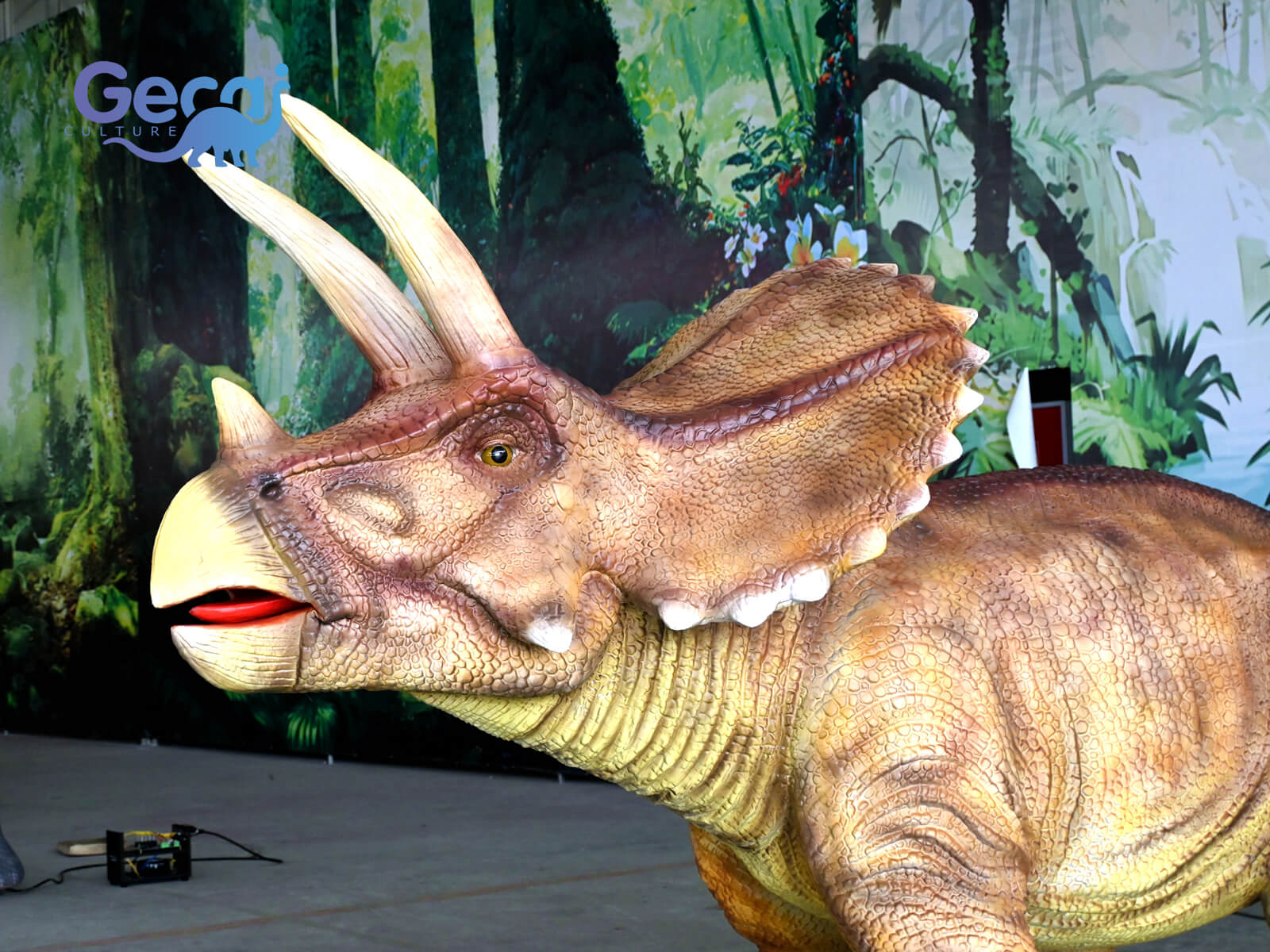 With lifelike movements such as slow head turns, eye blinking, breathing, tail swaying, and low, rumbling roars, the animatronic Triceratops offers a fully immersive and awe-inspiring experience. Perfect for themed trails, dinosaur adventure zones, or educational displays, it provides both entertainment and learning value.