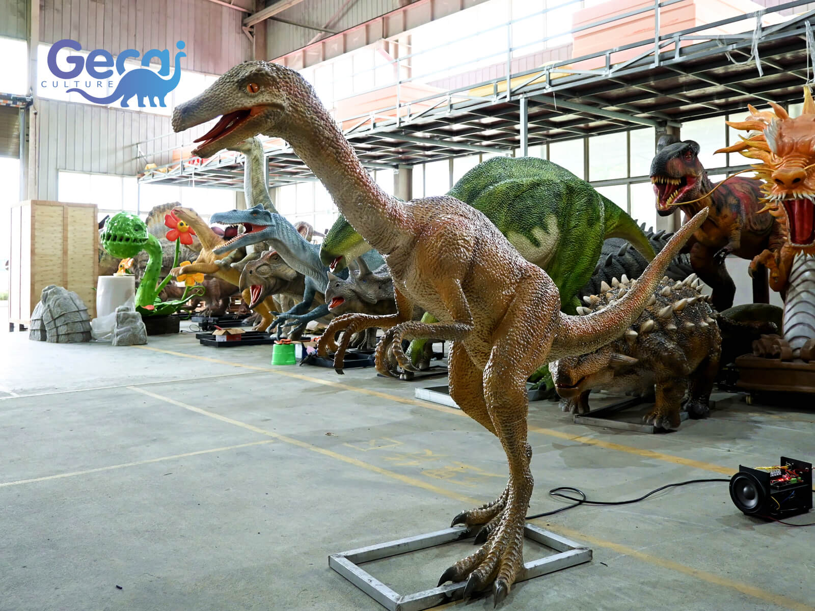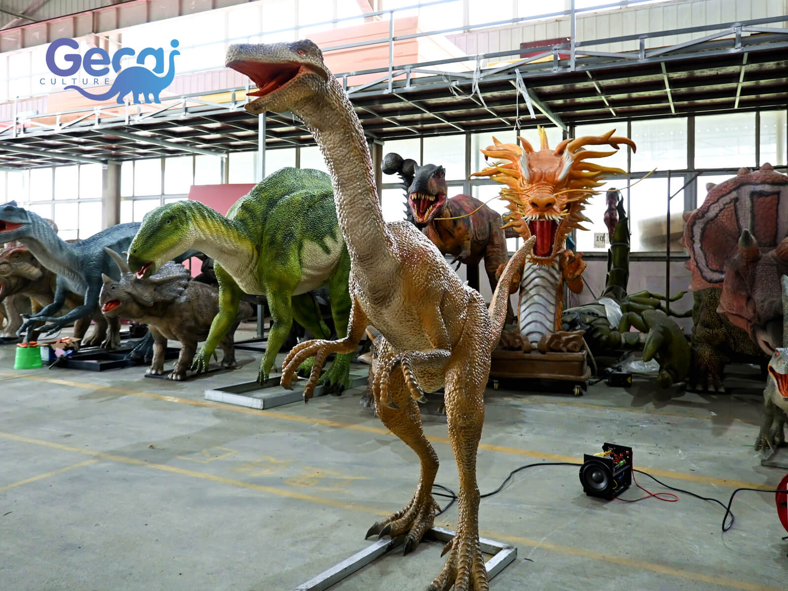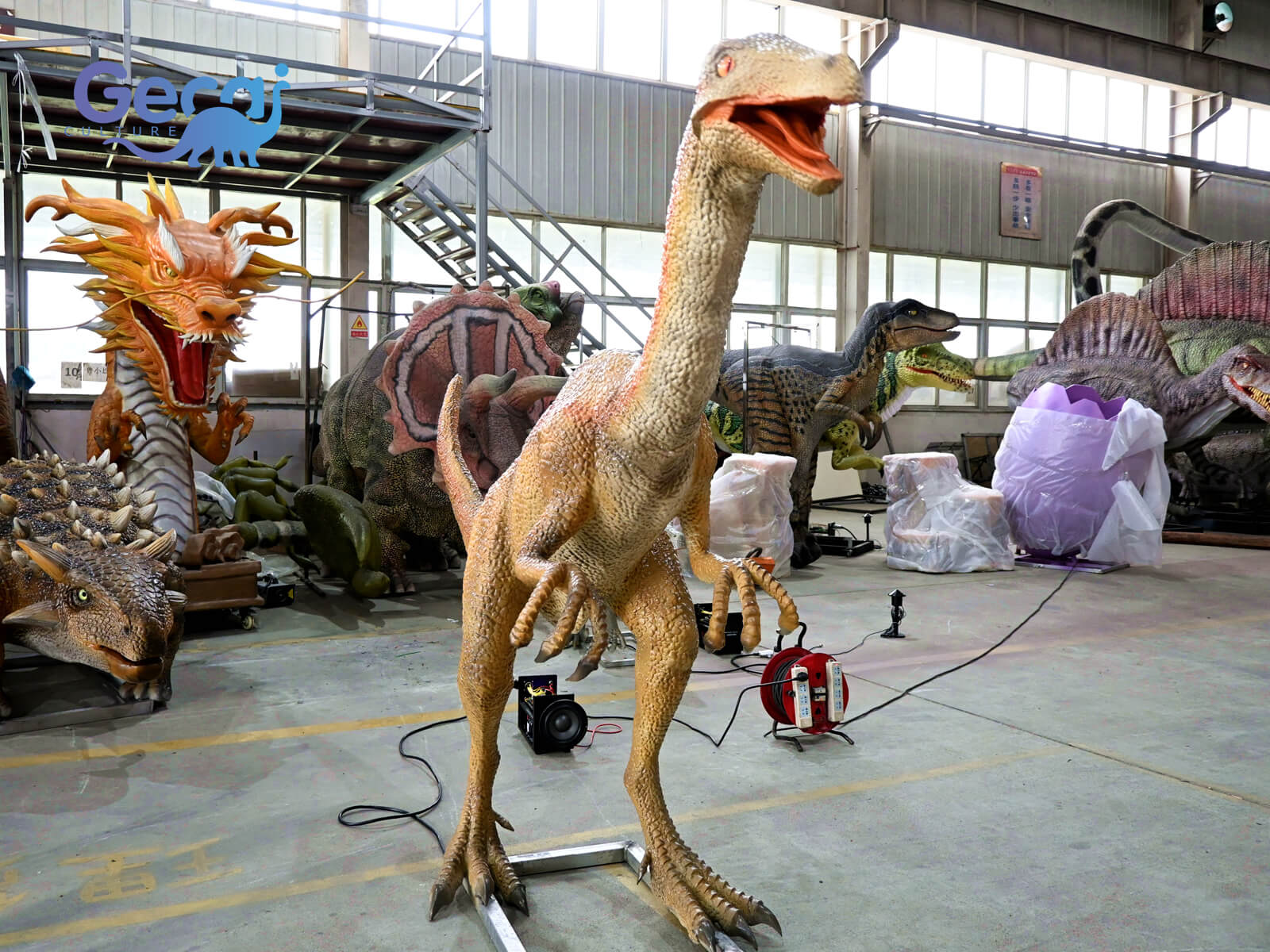 With swift head turns, tail sways, and light foot movements, paired with realistic sound effects, the model captures the alert and agile nature of this prehistoric sprinter. Its dynamic pose adds energy and excitement to any park setting.