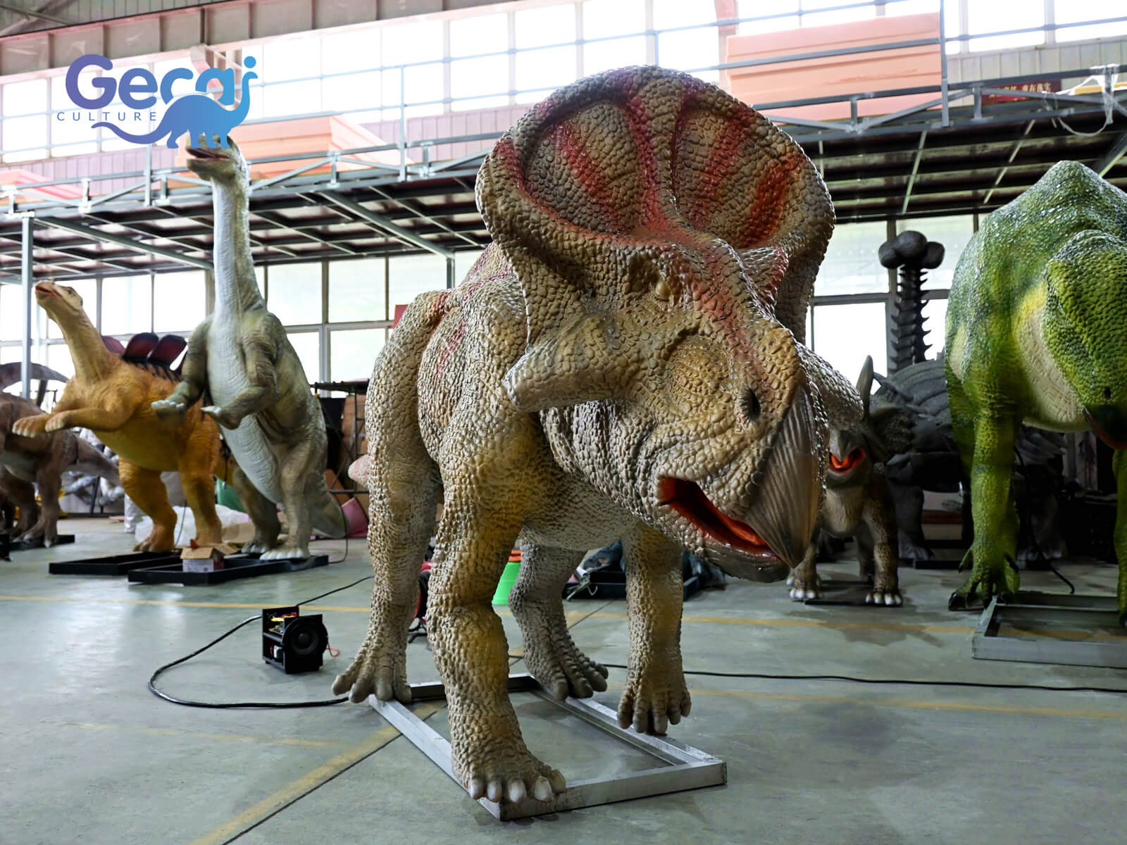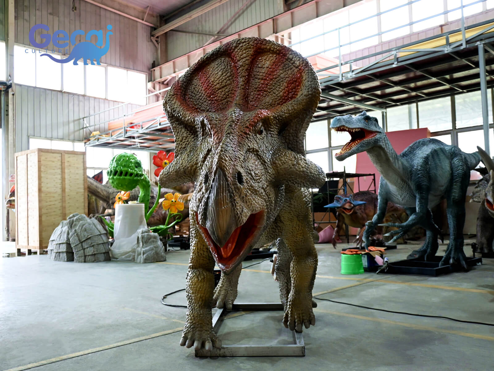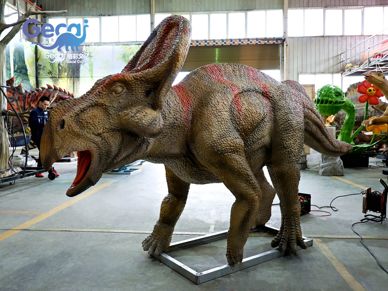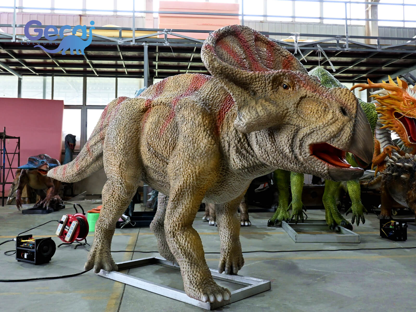With smooth, programmable movements like head turning, blinking, breathing, and tail swaying, the Protoceratops provides an engaging, interactive experience for visitors. Soft growls and other ambient dino sounds further enhance the realism.