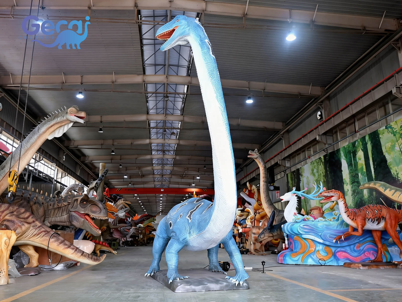 The Realistic Long Neck Dinosaur Animatronic Statue is an impressive life-sized attraction designed to capture attention in parks, museums, and themed exhibitions. Featuring a towering neck, detailed skin texture, and smooth, natural movements, it brings the presence of prehistoric giants vividly to life.