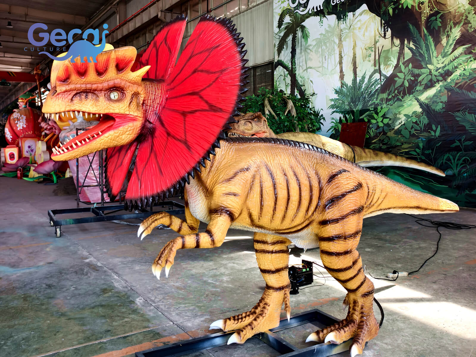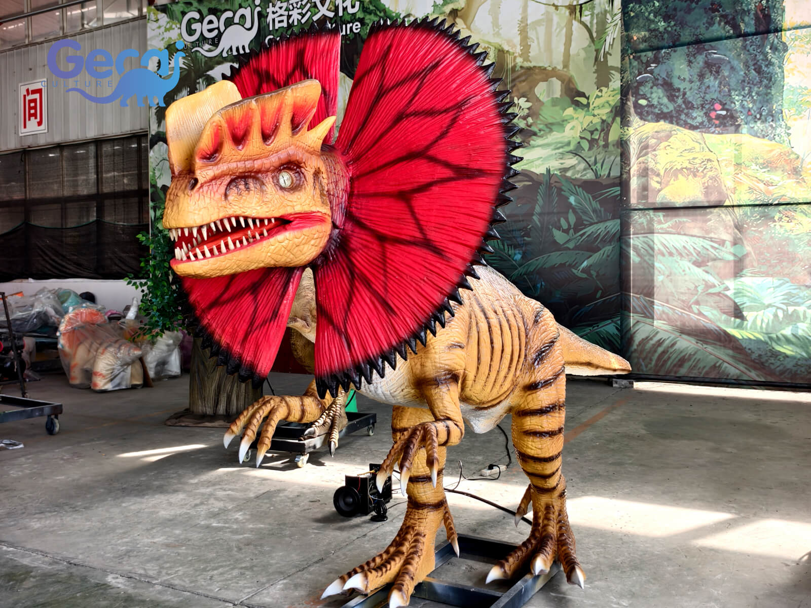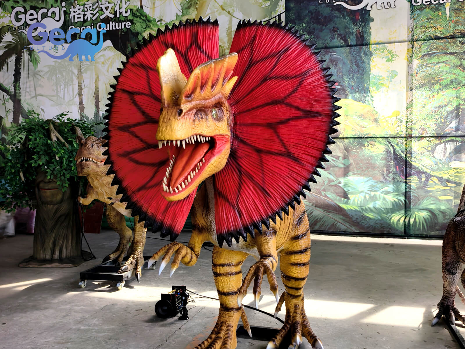 Add thrilling excitement to your dinosaur attraction with the Park-standard Animatronic Dilophosaurus Statue, a dynamic model designed to captivate and entertain. Famous for its distinctive twin crests and dramatic frill, this Dilophosaurus features vivid colors, lifelike skin texture, and a fierce, expressive face that grabs attention instantly.