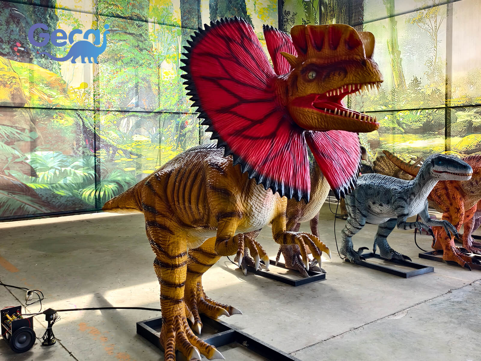 The statue comes to life with realistic movements such as head turns, frill expansion, jaw opening, tail swaying, and simulated roaring sounds. Some versions can even include water-spraying effects to mimic its iconic movie portrayal—perfect for surprising and delighting visitors.