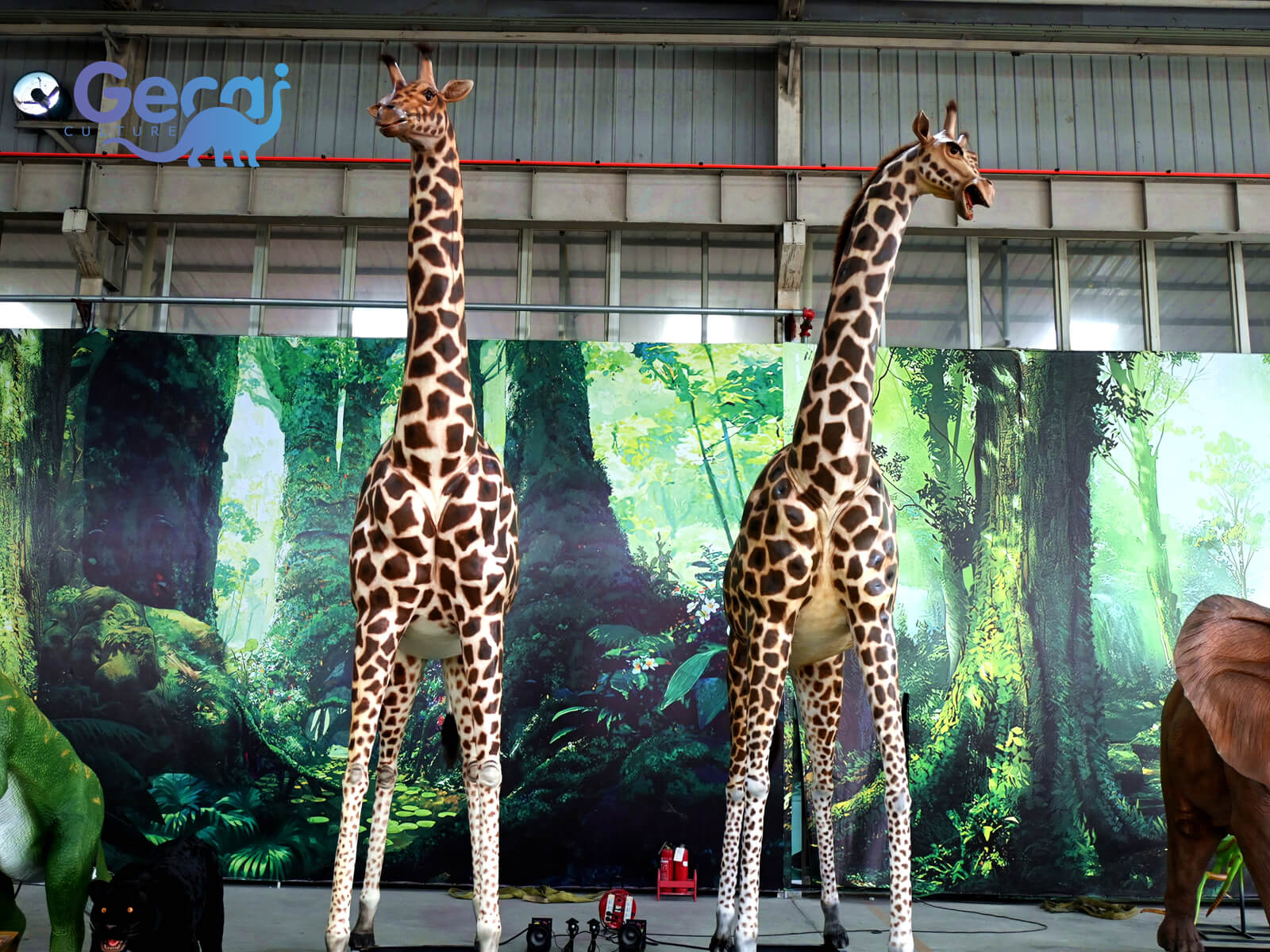 Bring the magic of the savanna to life with our Realistic Animatronic Giraffe, designed for zoos, museums, parks, and exhibitions. This towering model mimics the elegant movements of a real giraffe, including gentle neck swaying, blinking eyes, tail flicking, ear twitching, and natural sound effects.