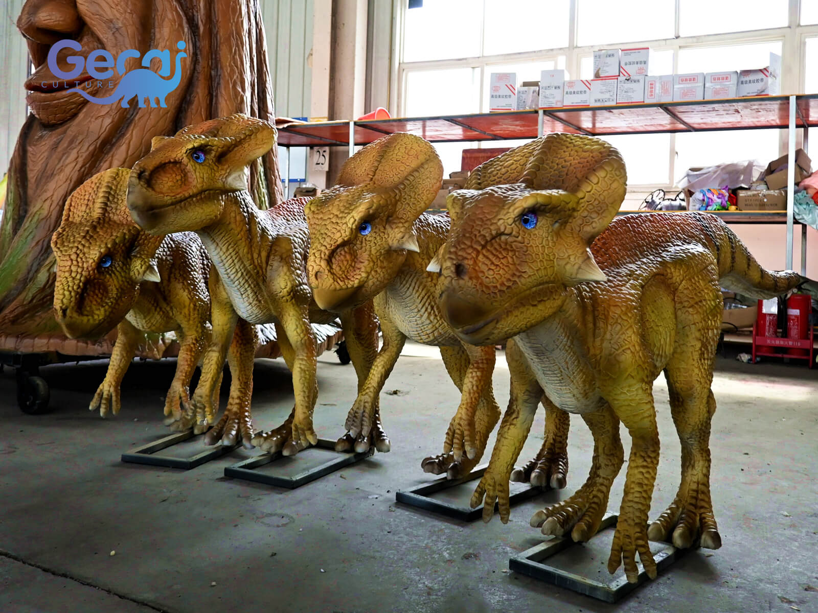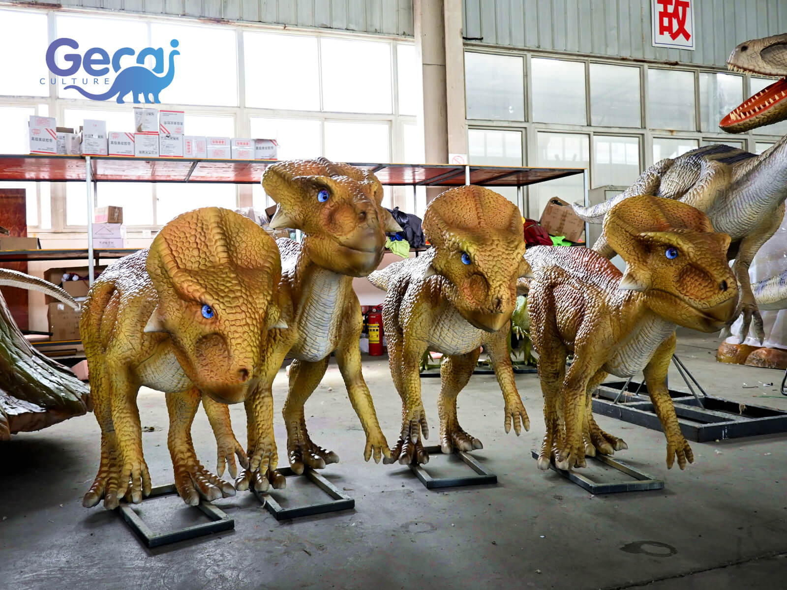 Introduce visitors to one of the lesser-known but fascinating dinosaurs with the Realistic Animatronic Microceratus Set. These small, horned dinosaurs are brought to life with detailed skin textures, vivid coloring, and naturalistic animations such as head tilts, tail movements, and blinking eyes.