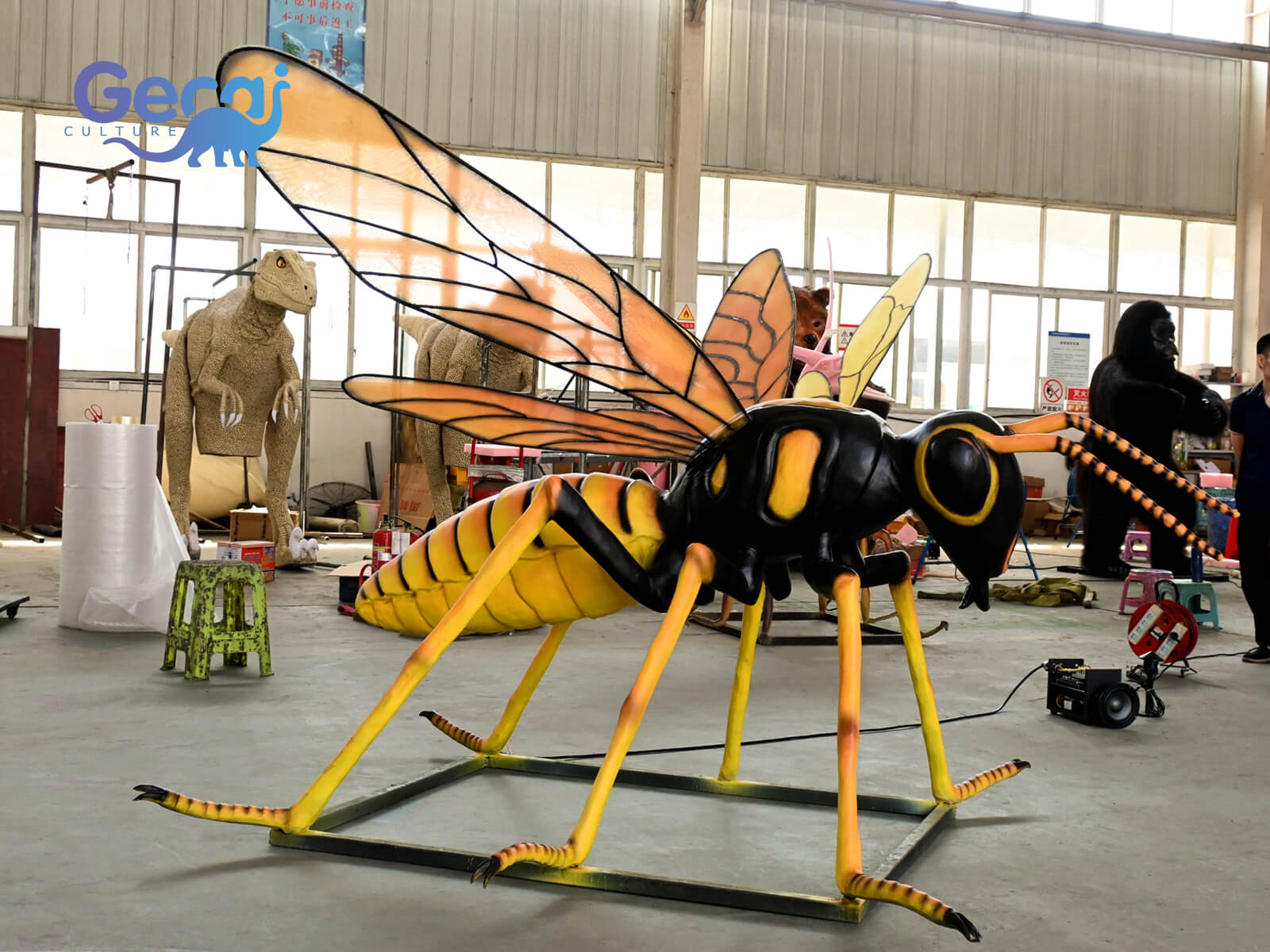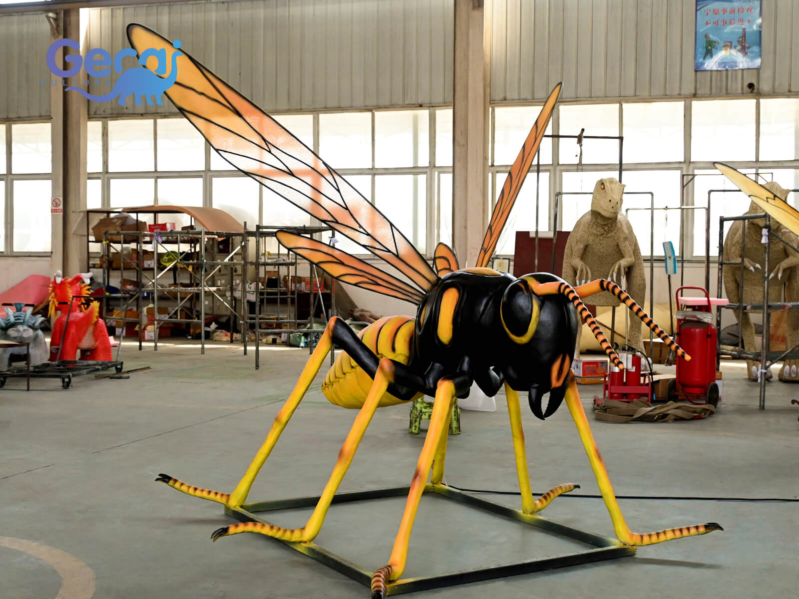 The animatronic wasp moves with precision—fluttering wings, subtle head movements, and a realistic buzzing sound—all designed to immerse visitors in a lifelike encounter. Whether part of a bug-themed attraction, nature trail, or educational zone, it’s sure to spark interest and conversation.