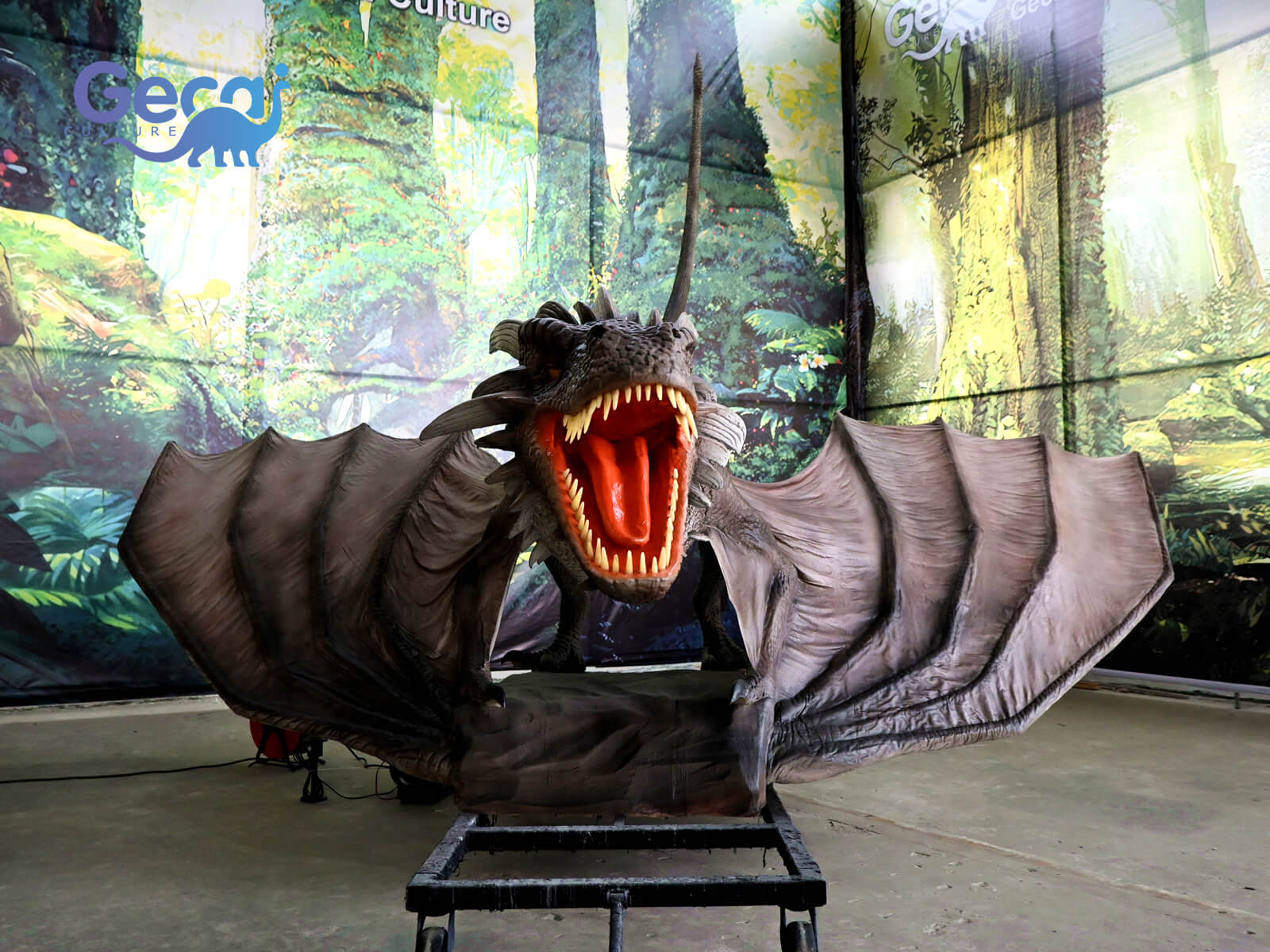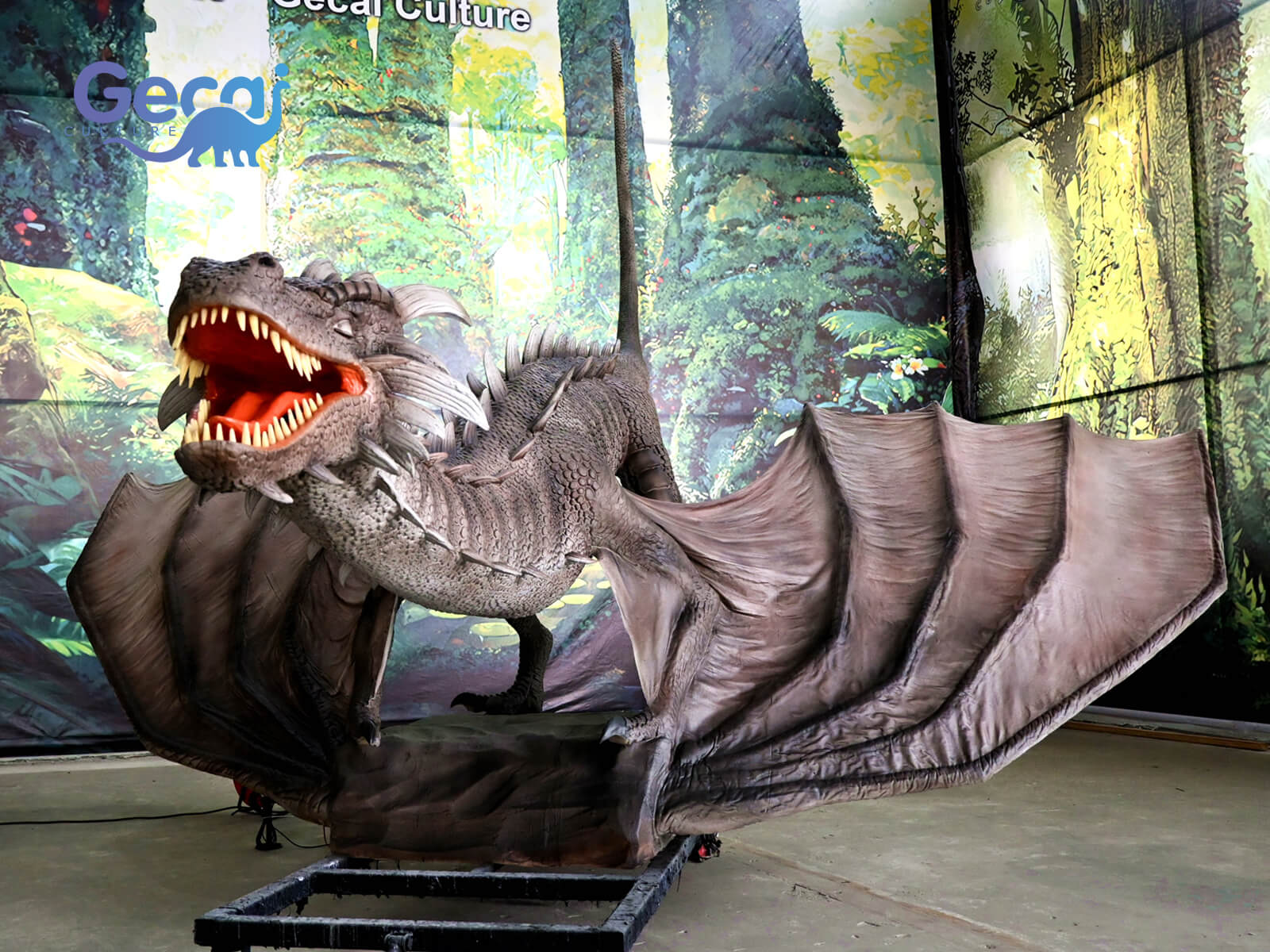 Action (customized according to customer requirements): 1. Mouth opening and closing synchronized with sound. 2. Blink eyes. 3. Head up and down, left and right. 4. Neck up, down, left, right. 5. Forelimb movement. 6. Chest breathing 7, tail swaying. 8. Body up, down, left, right. 9. Spread wings. 10. Tongue in and out. 11. Spray water. 12. Smoke spurts. 13. Spit bubbles. 14. Face tracking. 15. Voice conversation.
