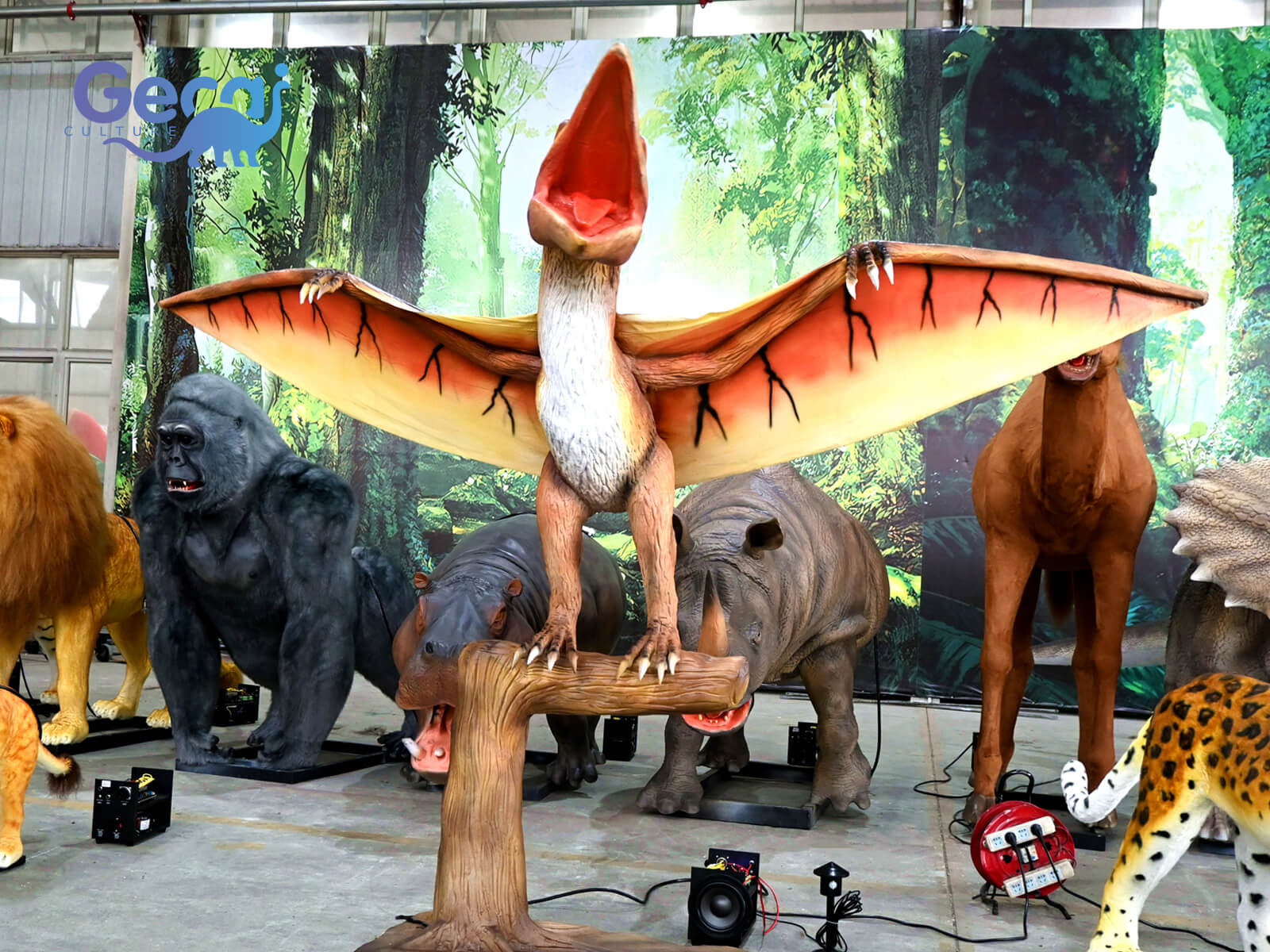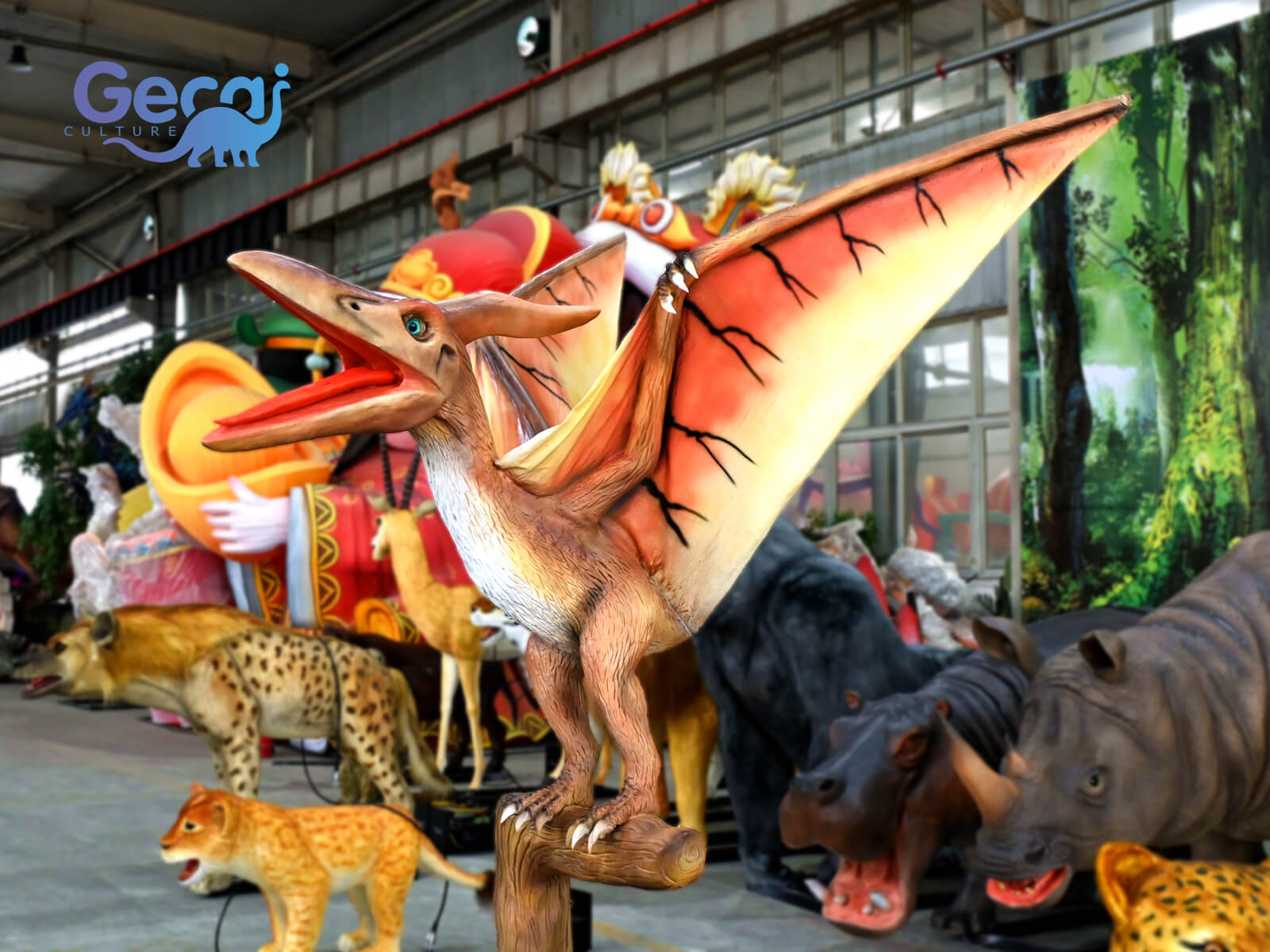 Available in custom sizes and postures—whether perched on a rock, hanging from above, or part of a dino-themed adventure—this animatronic Pteranodon is a striking addition that elevates any dino experience.