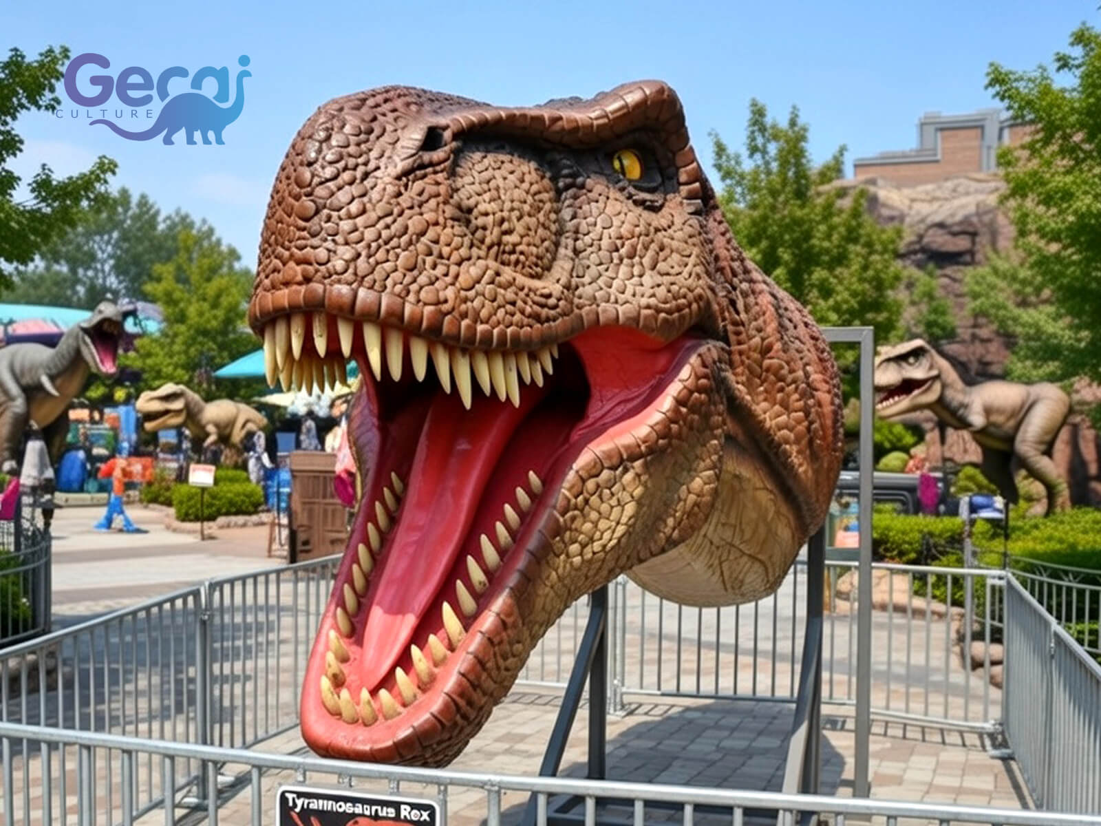 The Realistic T-Rex Animatronic Head is a striking display designed for parks, museums, exhibitions, and themed attractions. Featuring highly detailed skin textures, powerful jaws, and lifelike head movements, this model brings the fearsome Tyrannosaurus rex to life in an eye-catching and immersive way.