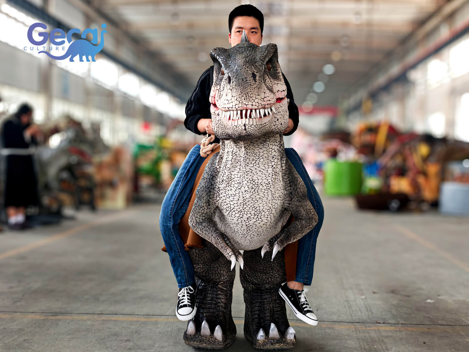 Customizable in color and style, this riding T-Rex costume is a lively and humorous addition that brings energy and attention to any event.
