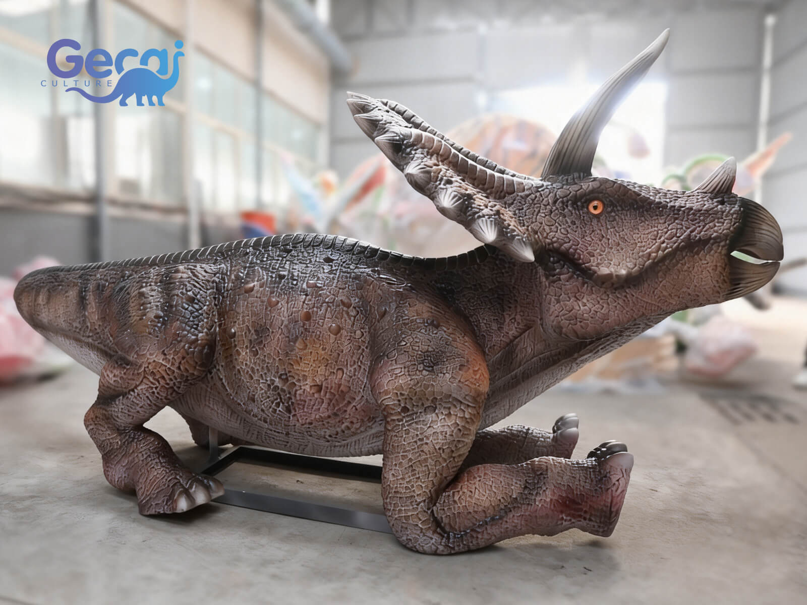The Lifelike Static Triceratops Statue is a realistic dinosaur display designed for parks, educational spaces, and themed attractions. Featuring detailed skin texture, the iconic frill and three horns, and accurate body proportions, this statue brings the Triceratops to life in a stationary, durable form.