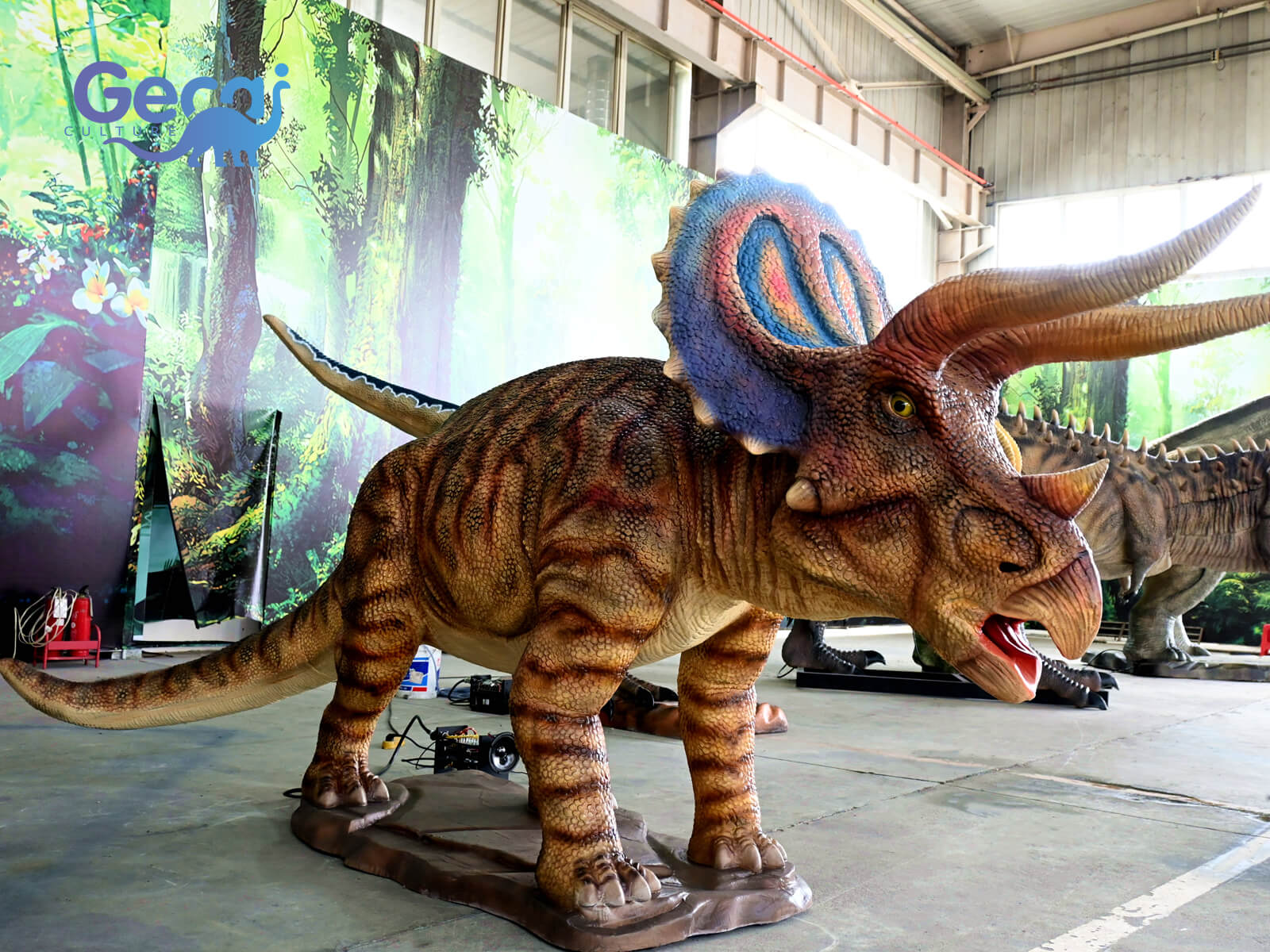 The Life-Size Triceratops Animatronic Statue for Sale is a meticulously crafted, realistic replica of the iconic dinosaur, featuring lifelike movements and sounds. Perfect for museums, theme parks, or educational exhibits, this animatronic marvel brings prehistoric times to life with its detailed design and interactive capabilities. Durable and weather-resistant, it ensures a captivating experience for audiences of all ages.