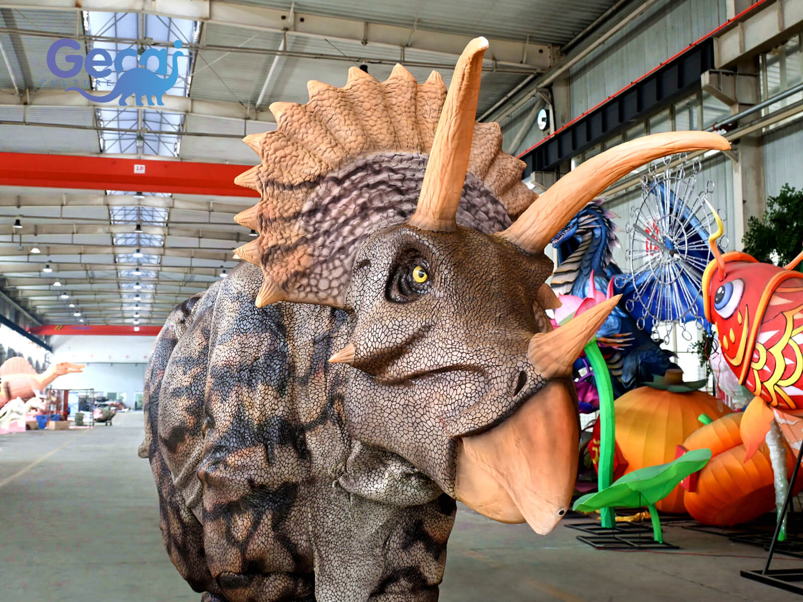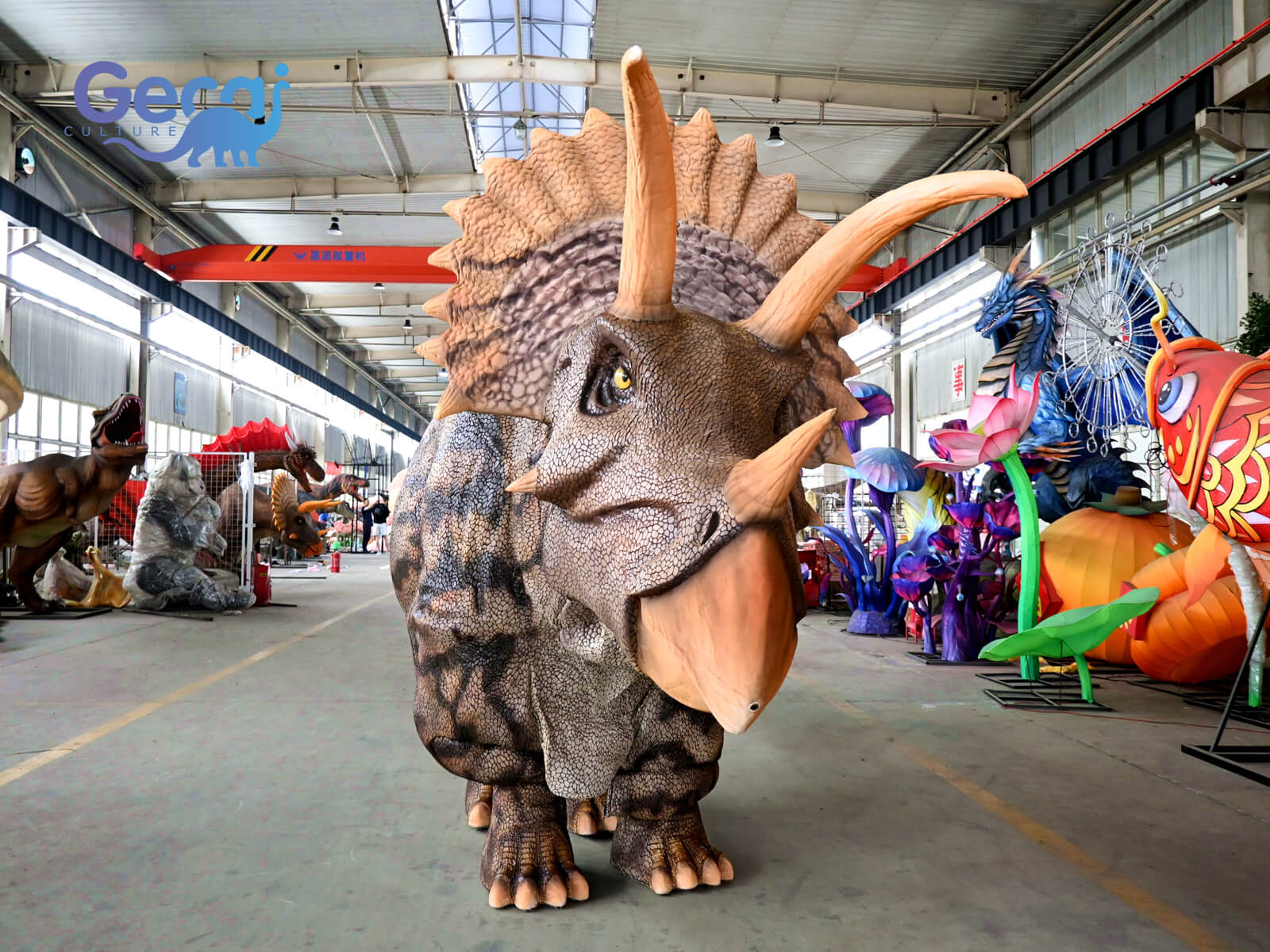 The Realistic Triceratops Dinosaur Costume captures the power and charm of this iconic three-horned dinosaur. Designed for live performances, parades, or interactive events, it features detailed skin textures, natural movements, and a striking appearance that immerses audiences in the prehistoric world.