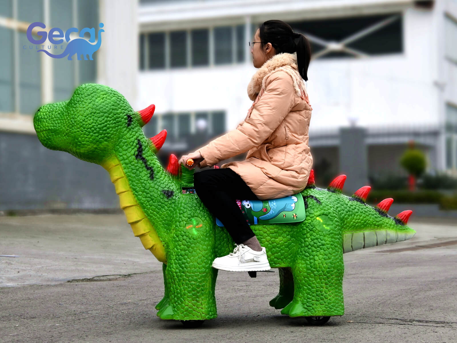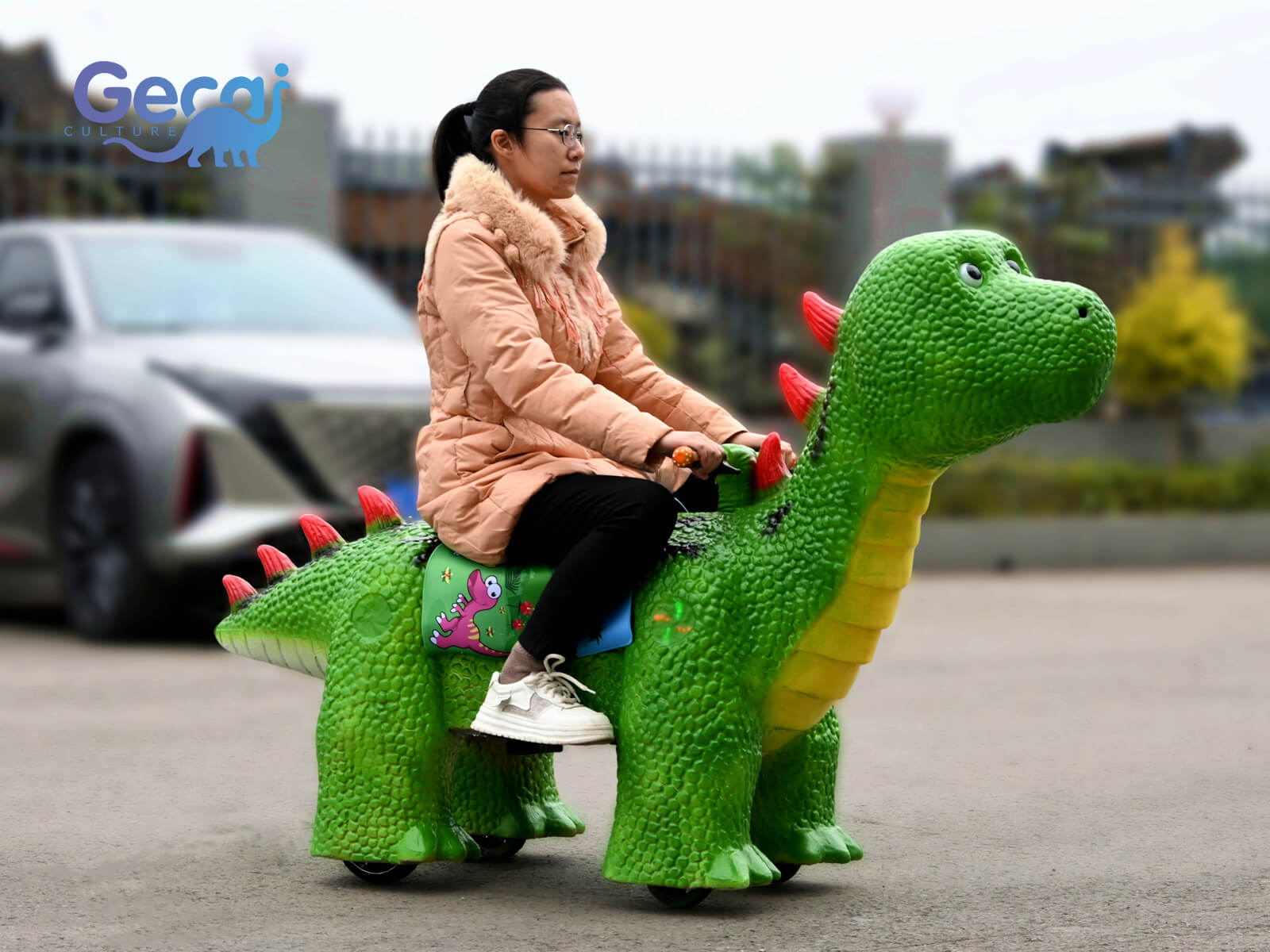 Dinosaur Scooter and Dinosaur Ride: Combining fun and mobility, they are designed in the shape of dinosaurs, providing a unique and enjoyable ride for kids and adults alike. They are ideal for theme parks, festivals, and parties.