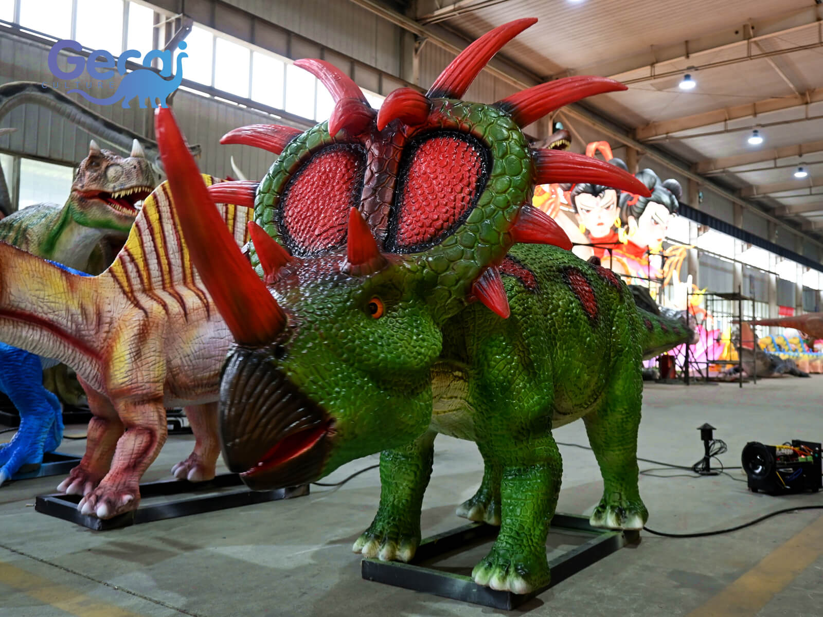 The Dinosaur Park Lifelike Animatronic Styracosaurus brings this iconic horned dinosaur to life with stunning realism and detailed craftsmanship. From its impressive frill and multiple facial horns to its textured skin and expressive eyes, every element is designed to create an authentic prehistoric encounter.