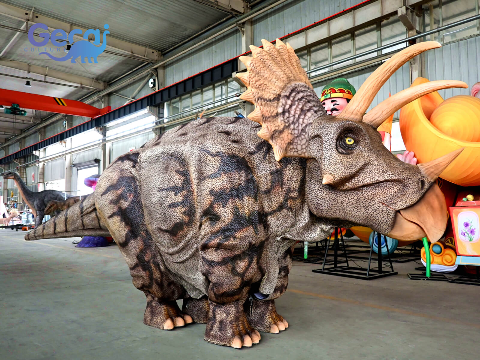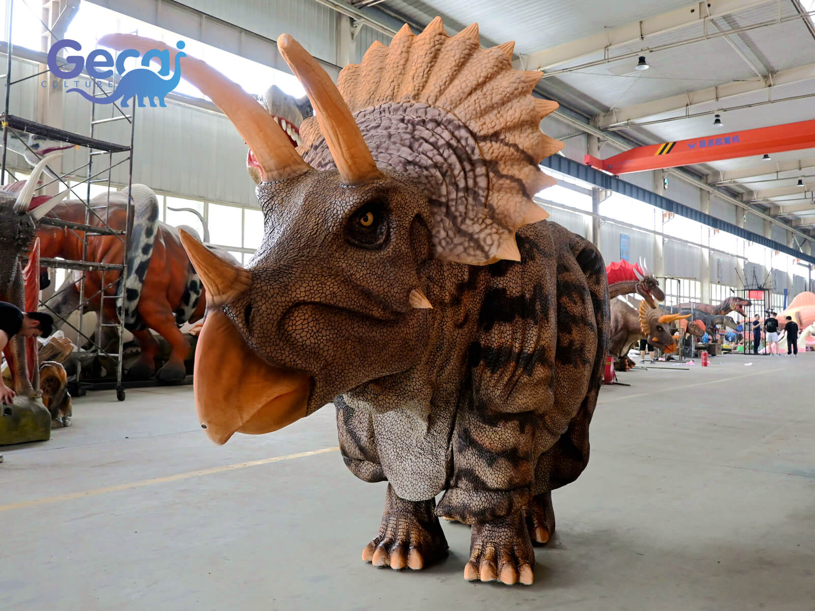 The Realistic Triceratops Dinosaur Costume captures the power and charm of this iconic three-horned dinosaur. Designed for live performances, parades, or interactive events, it features detailed skin textures, natural movements, and a striking appearance that immerses audiences in the prehistoric world.