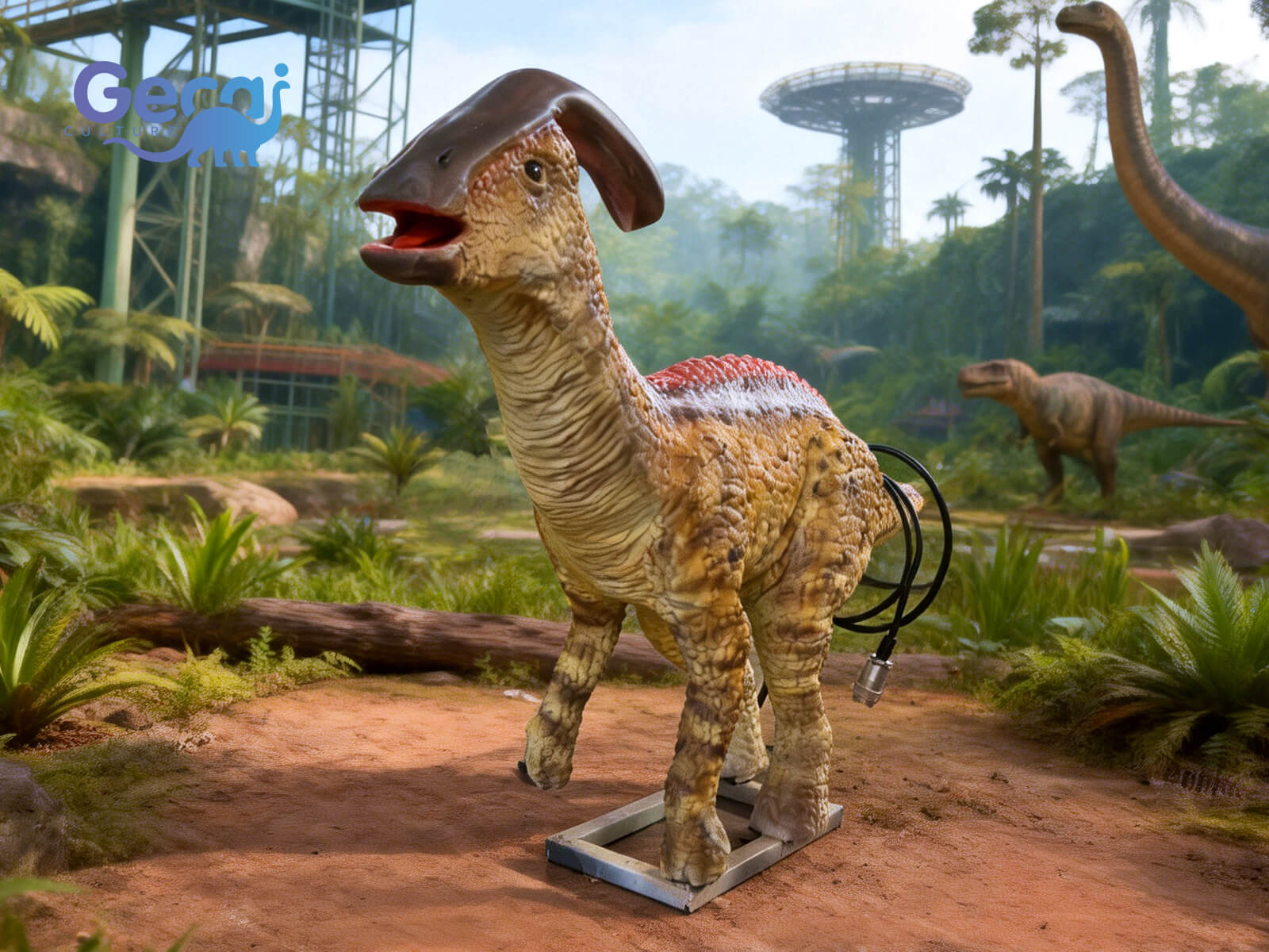 Ideal for kids' zones, educational exhibits, and interactive dinosaur scenes, it can be displayed on its own or alongside adult Parasaurolophus models to create a storytelling family scene. Its adorable appearance, smooth motion, and strong photo appeal encourage interaction, learning, and memorable experiences for visitors of all ages.