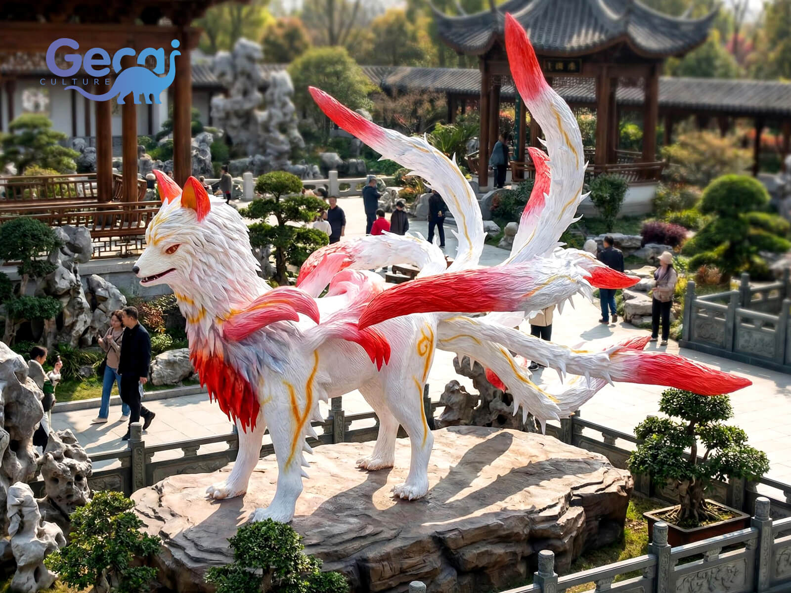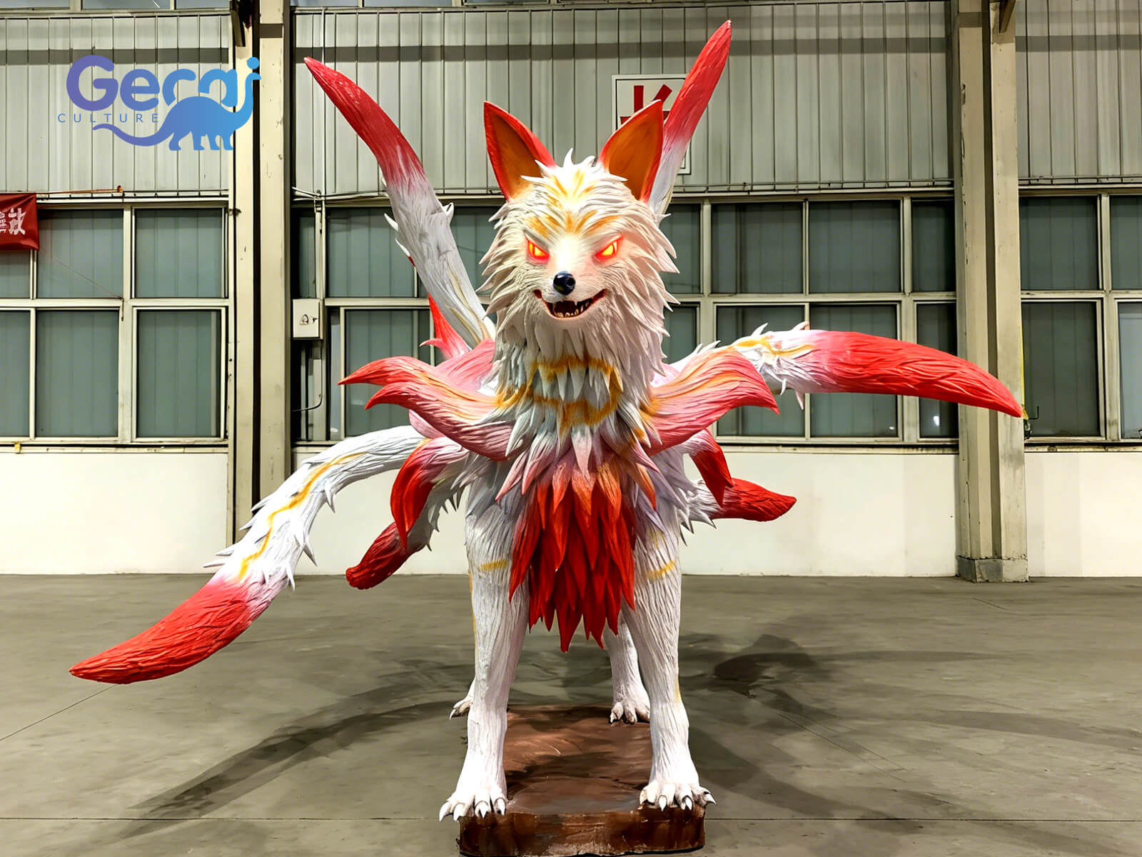 The Red Animatronic Nine-Tailed Fox is a captivating mythical creature display designed for parks, cultural attractions, and themed exhibitions. Featuring vibrant red fur tones, flowing multi-tail movement, and finely crafted details, this animatronic model brings legendary folklore vividly to life.