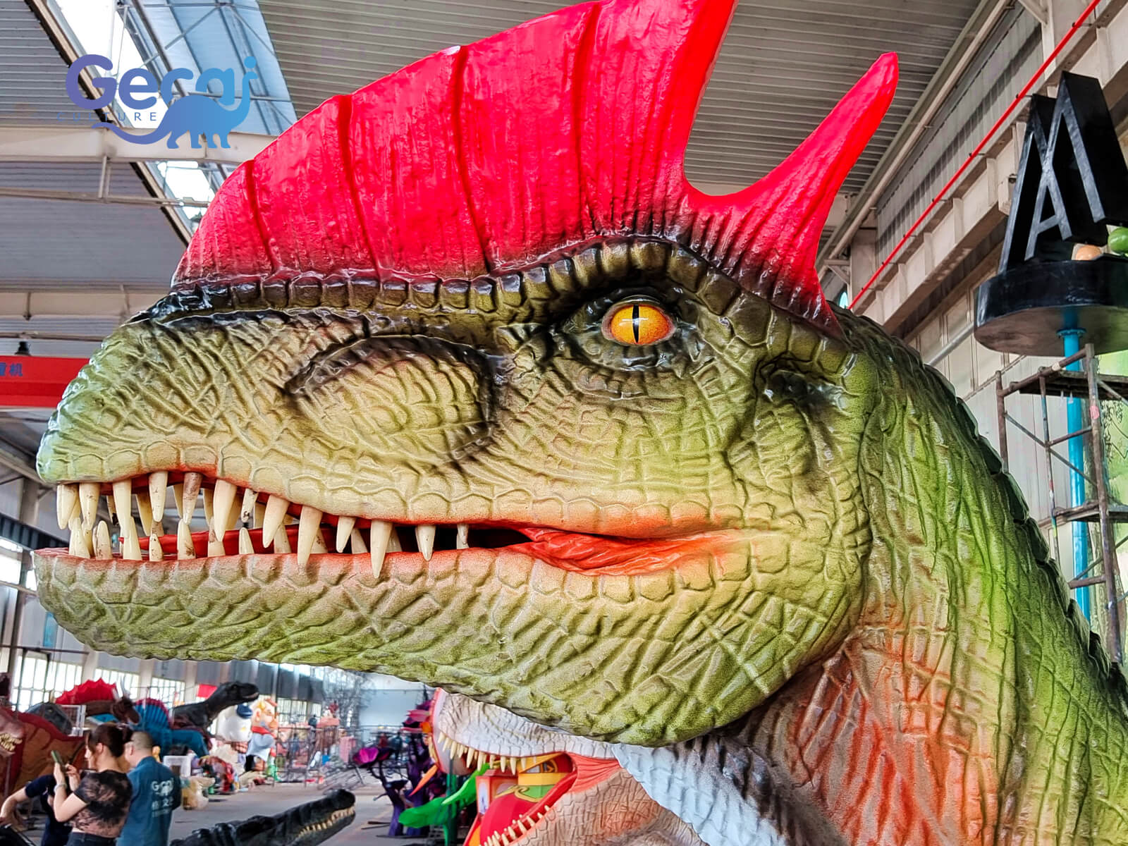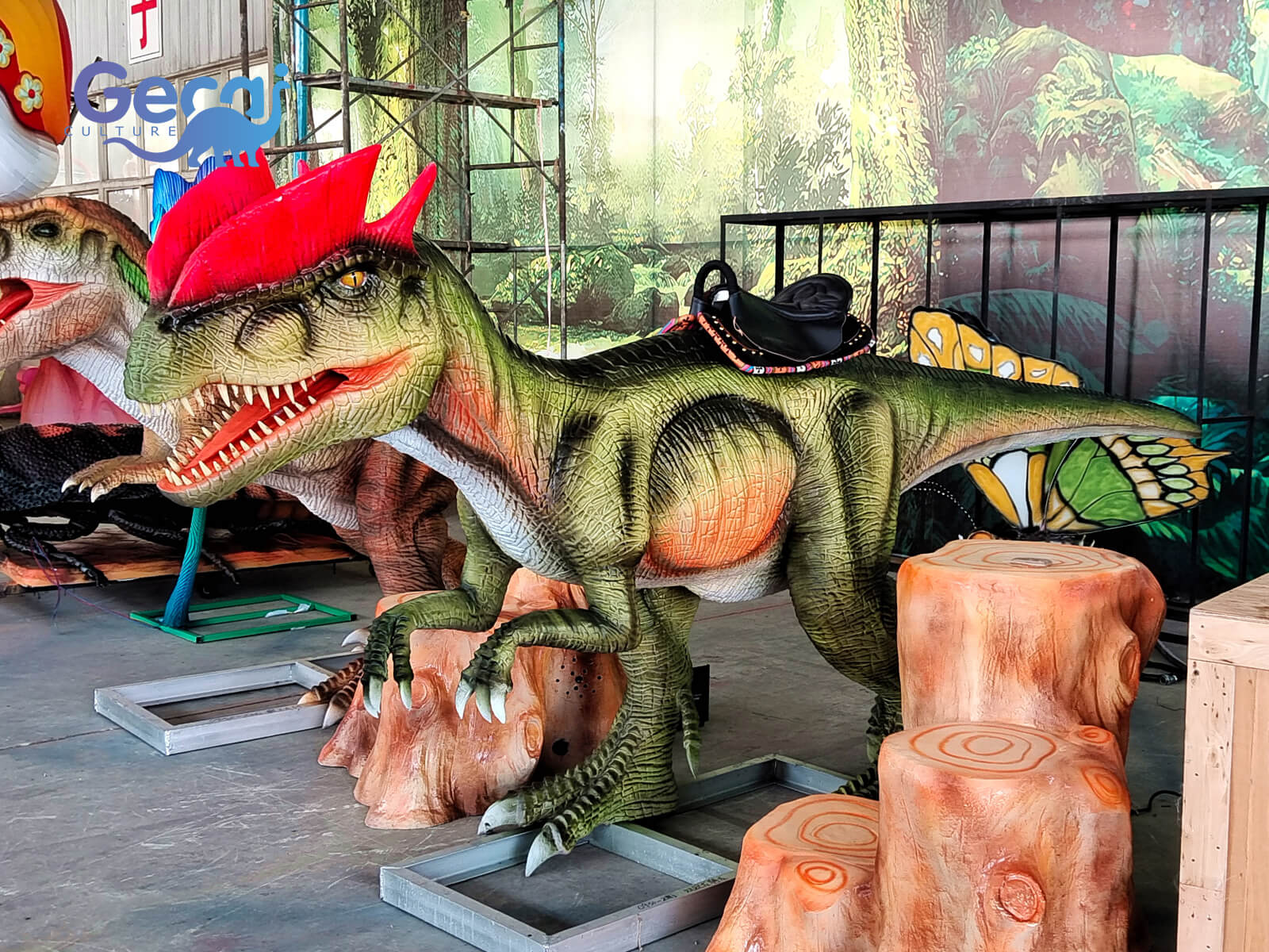The Realistic Dinosaur Dilophosaurus Ride brings prehistoric excitement to theme parks and dinosaur exhibitions. Designed with lifelike details, from textured skin to realistic movements and roars, this ride allows kids and adults alike to experience the thrill of "riding" a Dilophosaurus.
