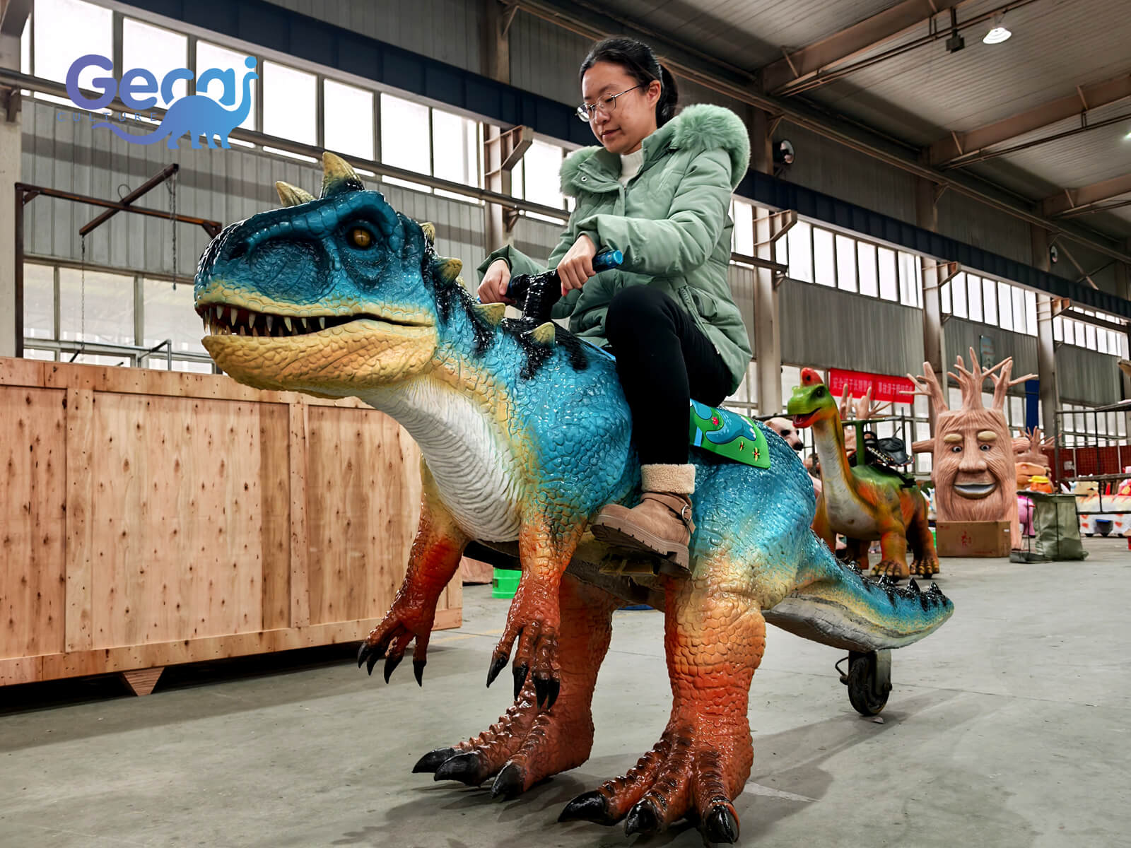 Dinosaur Scooter and Dinosaur Ride: Combining fun and mobility, they are designed in the shape of dinosaurs, providing a unique and enjoyable ride for kids and adults alike. They are ideal for theme parks, festivals, and parties.