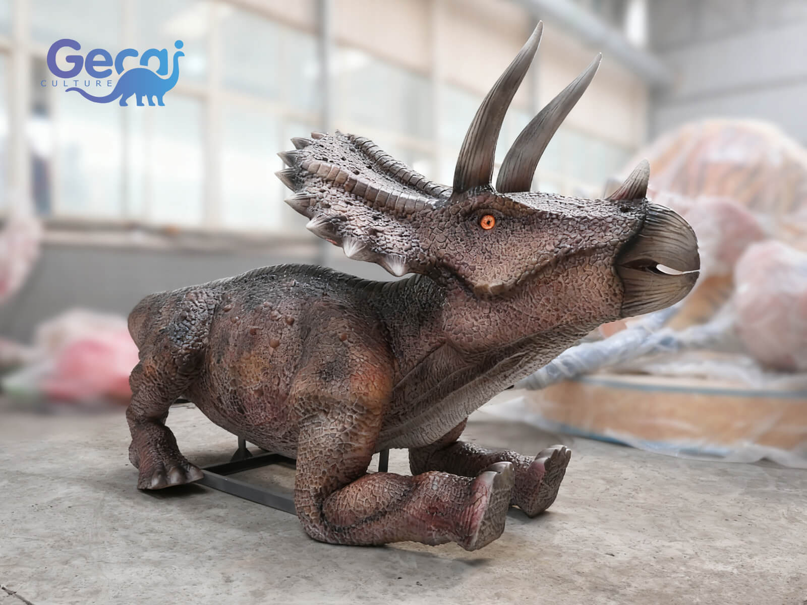 The Lifelike Static Triceratops Statue is a realistic dinosaur display designed for parks, educational spaces, and themed attractions. Featuring detailed skin texture, the iconic frill and three horns, and accurate body proportions, this statue brings the Triceratops to life in a stationary, durable form.